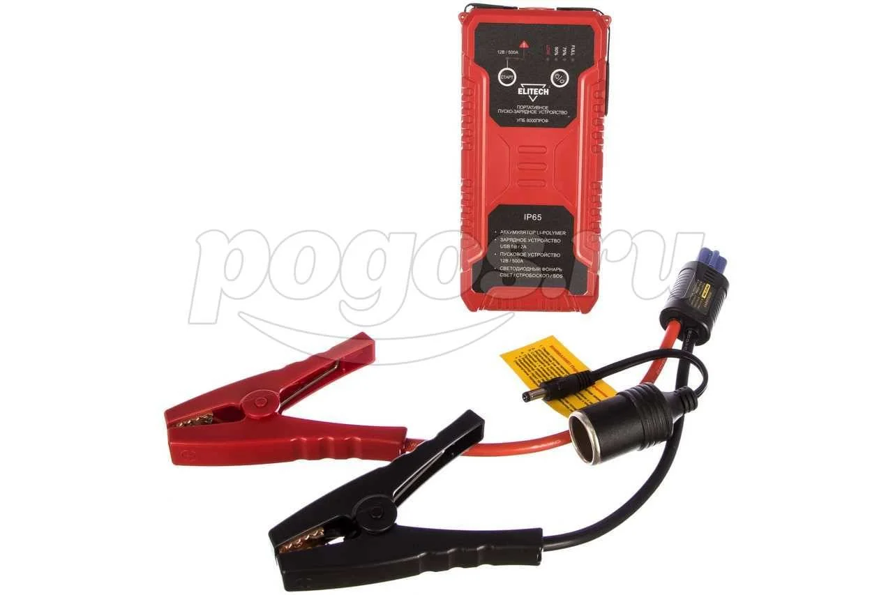 Зарядное устройство Elitech УПБ 8000ПРОФ заряжает ноутбуки, планшеты, смартфоны и другие гаджеты через USB разъем, а также позволяет запустить двигатель автомобиля напряжением 12 В в холодное время года.
