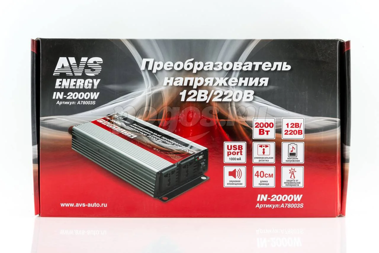 Преобразователь напряжения 2000W 12V/220V AVS, артикул: AVS IN-2000W/A78003S