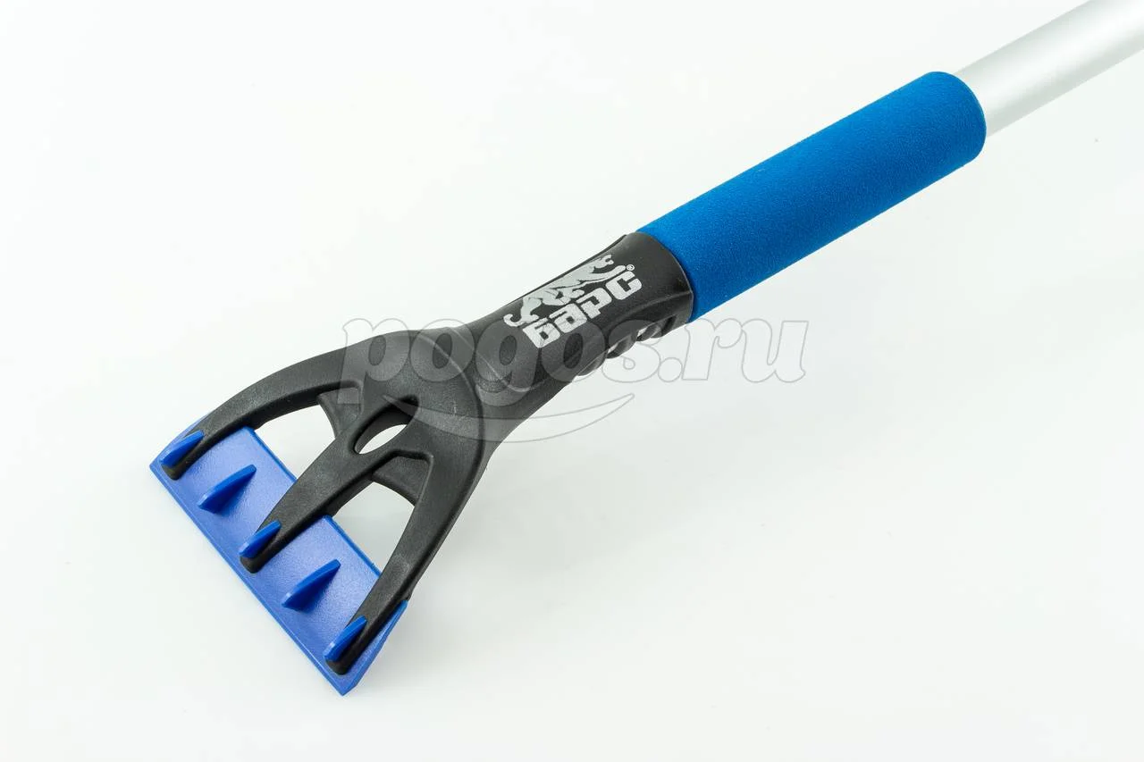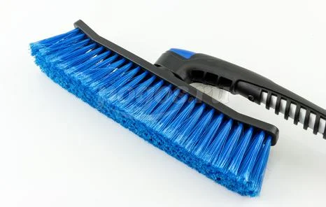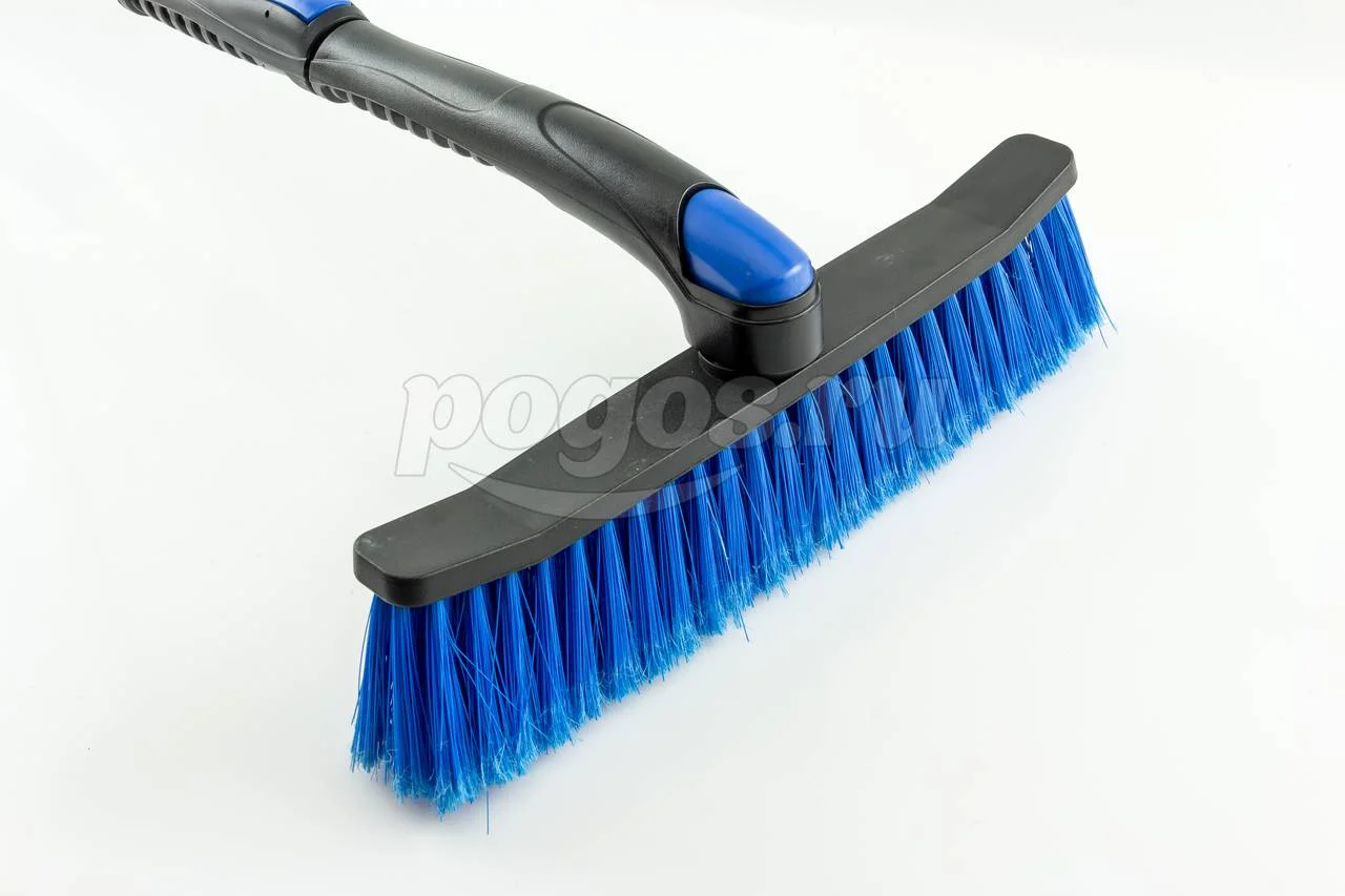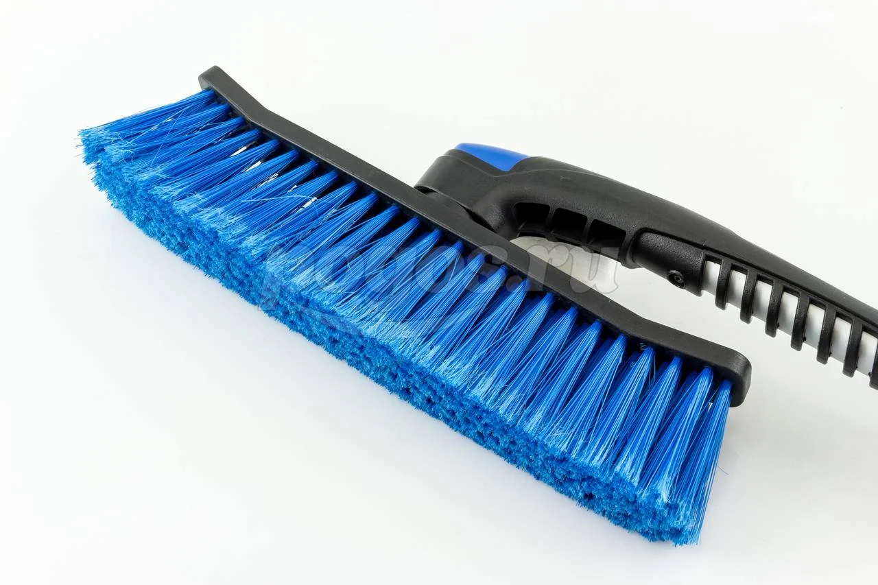 Густая, распушенная щетина для бережного сметания снега с поверхности. Мощный скребок с зубьями для дробления льда.