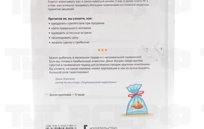 Эта книга – отличное руководство по работе с большими компаниями. Стратегии и приемы, изложенные в ней, подходят для любых продаж b2b, безотносительно размеров предполагаемых контрагентов. Книга расскажет, как начать сотрудничество с новыми клиентами – крупными компаниями, расширить предложение для клиентов существующих и как сделать, чтобы это было выгодно, надолго и с удовольствием.