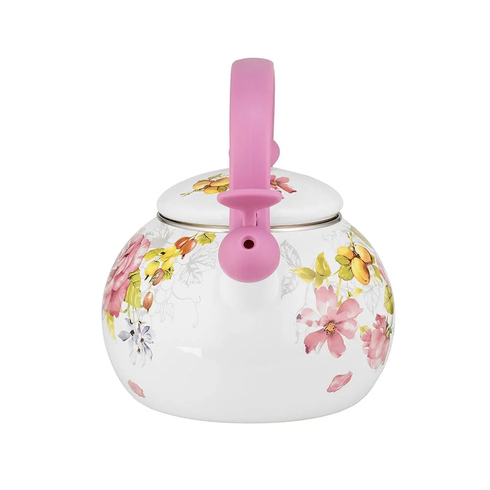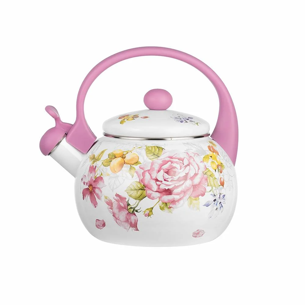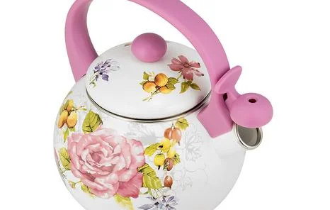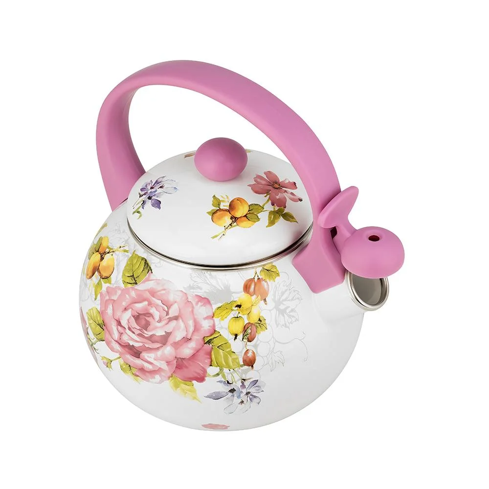 Эмалированный чайник LARA со встроенным свистком и декорированием деколью – это практичный и экологичный помощник на вашей кухне. Благодаря эмалевому покрытию чайник не впитывает посторонних привкусов и дольше сохраняет тепло. Свисток с рычагом для открывания носика оповестит вас, когда закипит вода. Чайник изготовлен из углеродистой стали с трехслойным наружным и внутренним эмалированным покрытием. Эмаль устойчива к бактериям, легко моется и не впитывает посторонние запахи. Для свистка и ручек использовали безопасный ненагревающийся пластик. Подходит для использования на газовых, чугунных, стеклокерамических, галогеновых, индукционных конфорках.