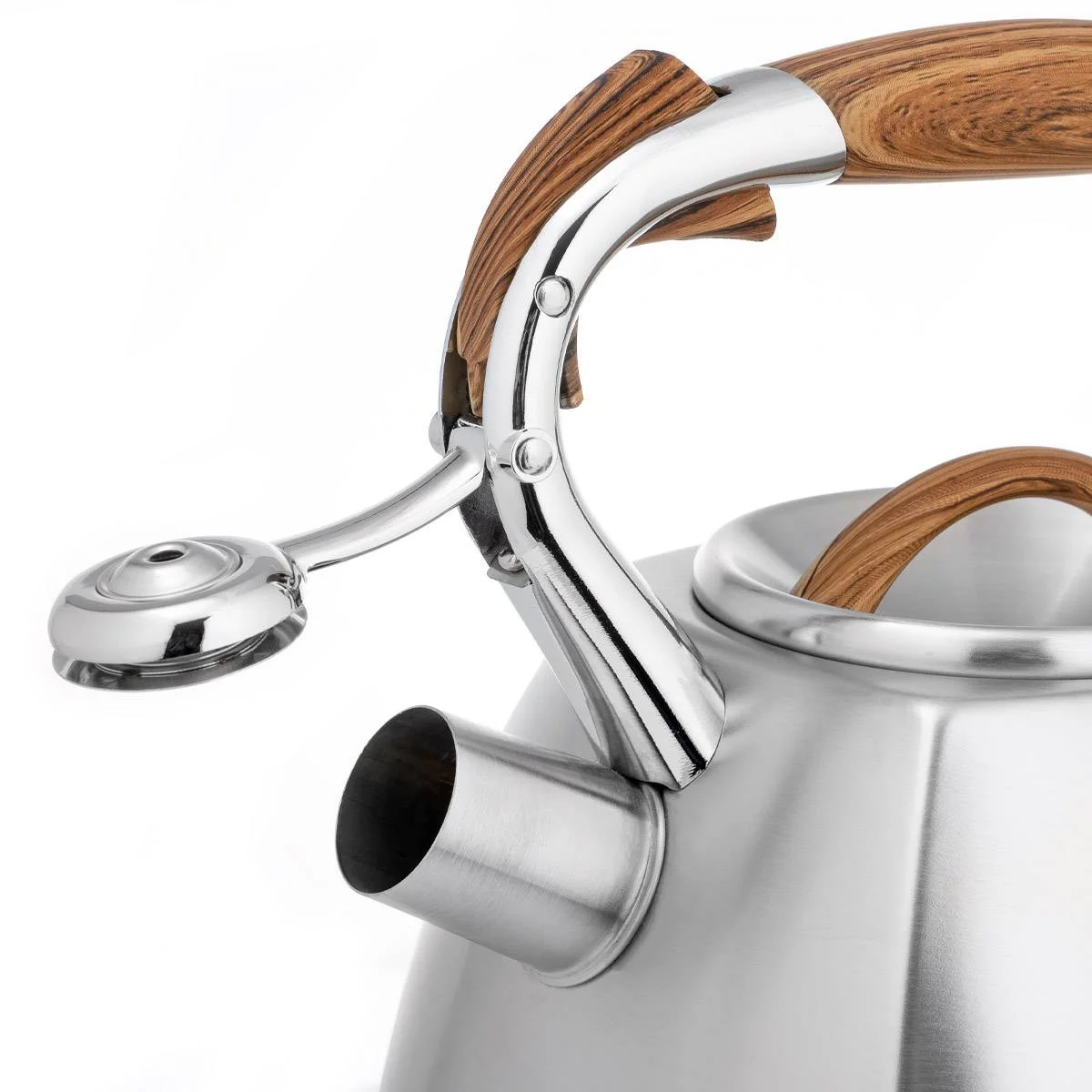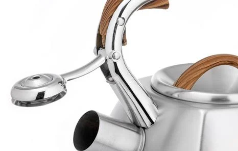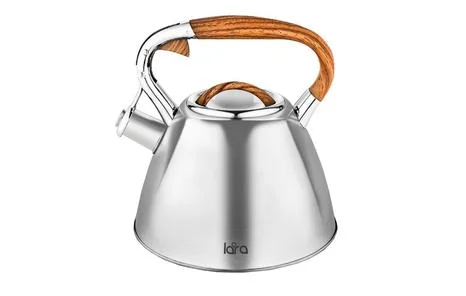 Современный чайник со свистком LARA в четырехгранном корпусе. Сочетание матовой полировки корпуса и деревянной фактуры придется по душе каждому. Объема чайника достаточно для небольшой семьи, поэтому нет необходимости лишний раз кипятить воду. Чайник изготовлен из высококачественной нержавеющей стали. Он оснащен свистком с безопасным кнопочным механизмом. Ручка из ненагревающегося пластика окрашена под дерево и имеет приятное на ощупь силиконовое покрытие Soft-touch. Толстое индукционное капсулированное дно подходит для всех типов плит.