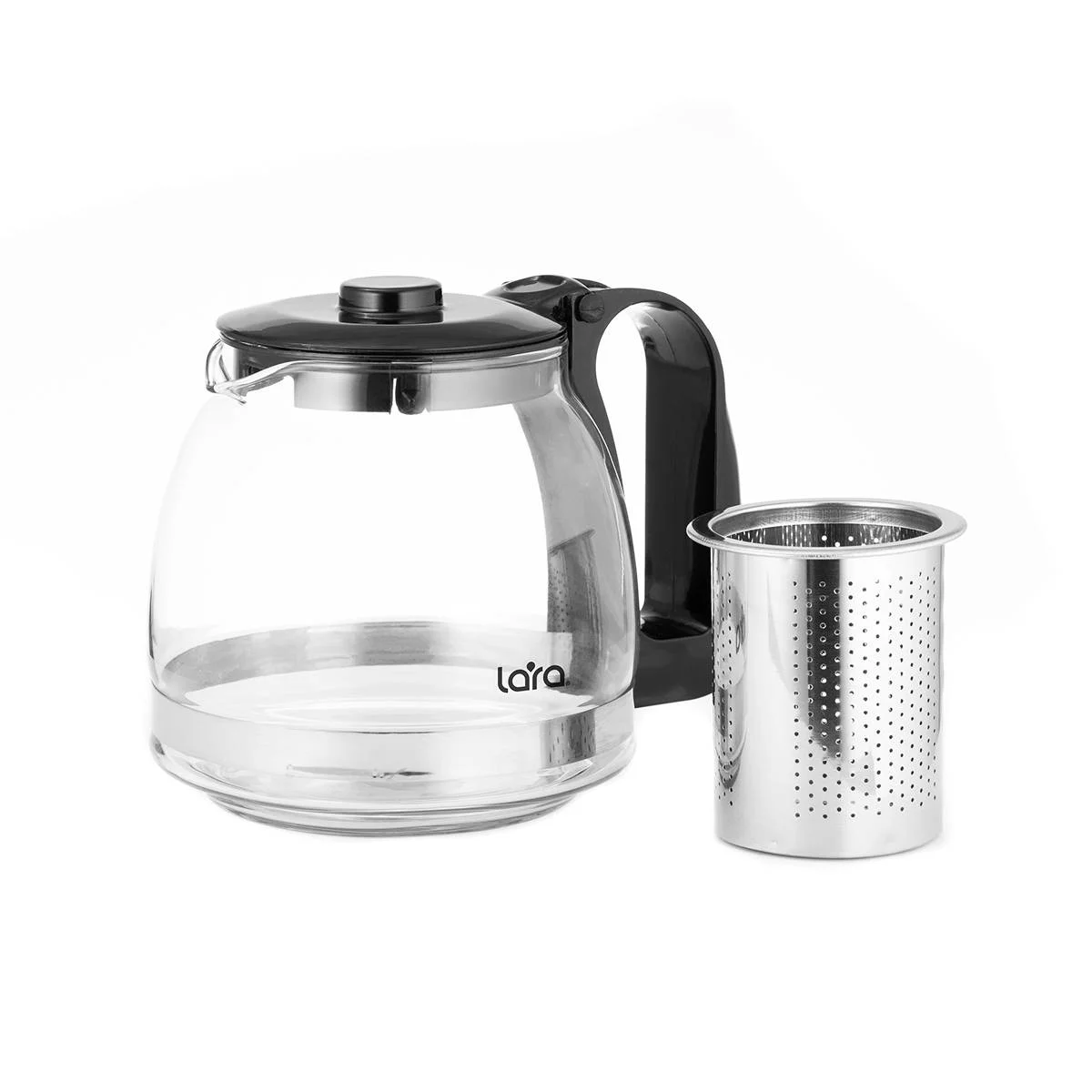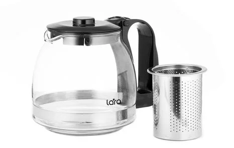 Стильный заварочный чайник LARA имеет оптимальный объем чаши и подойдет для заваривания различных сортов чая. Классическая форма корпуса, удобная ручка и хромированная отделка делают использования чайника комфортным и приятным. Мягкий съемный заварочный фильтр прекрасно подойдет для приготовления крупнолистового и мелколистового чая. При производстве использованы только экологически чистые и безопасные материалы, которые не вступают в реакцию с приготавливаемым напитком. Колба чайника выполнена из стекла, ручка и крышка из пищевого пластика. Съемный заварочный фильтр из нержавеющей стали легко очистить и использовать вновь.