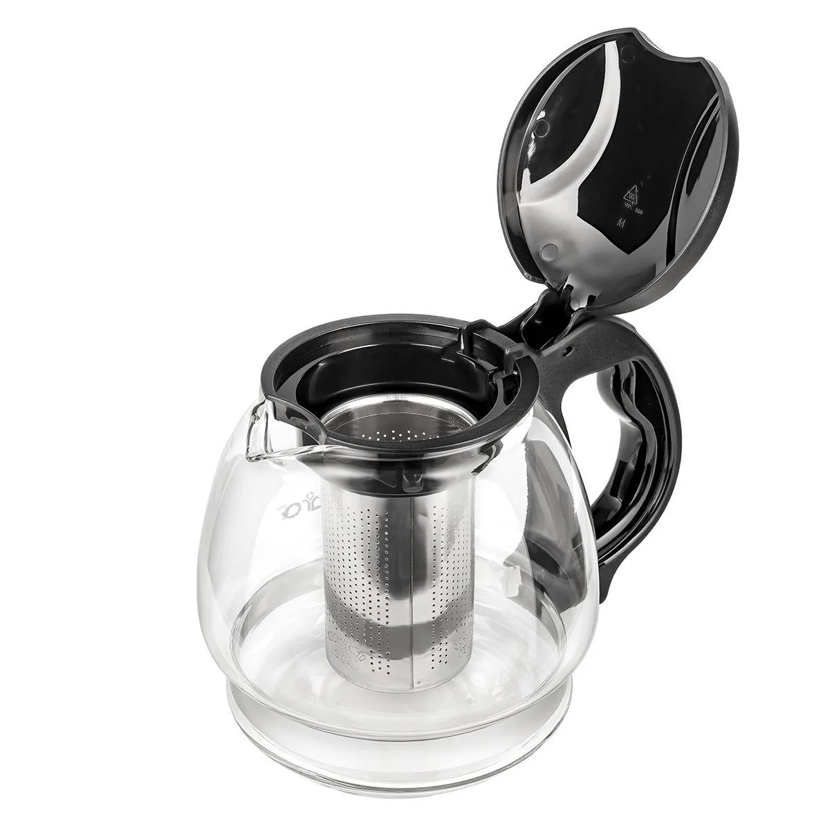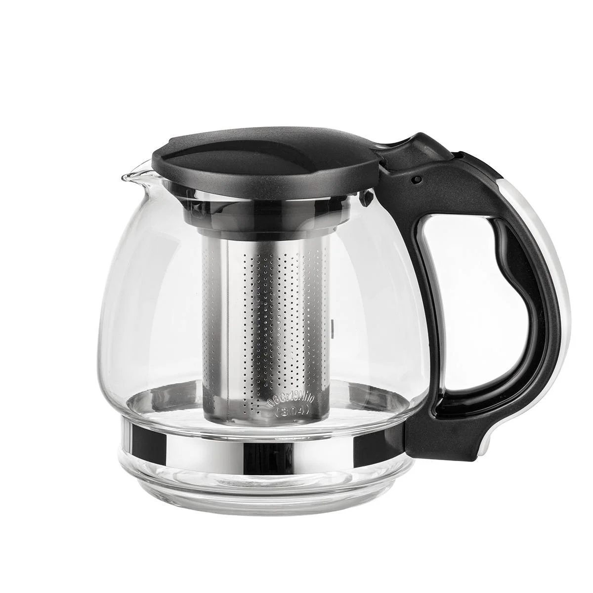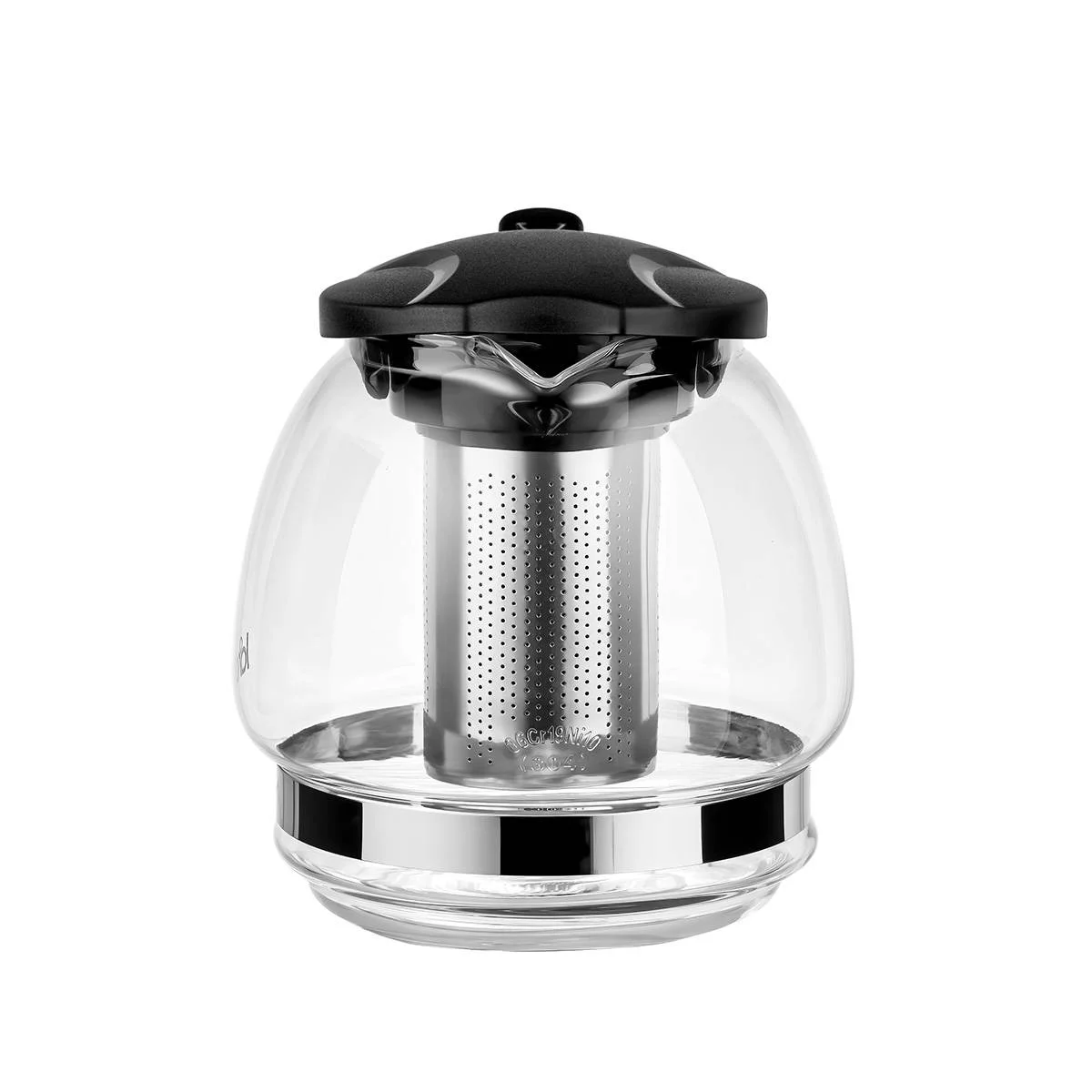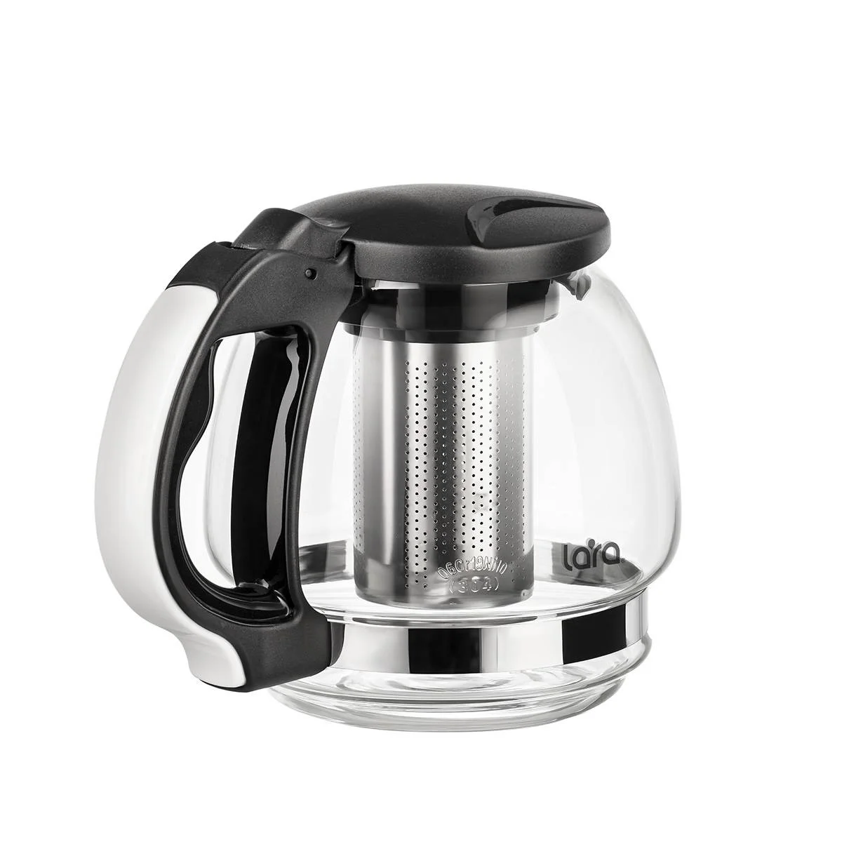 Классический заварочный чайник LARA с увеличенным объемом колбы и эргономичной ручкой. Одного заваривания будет достаточно для 8-10 порций любимого напитка. Подойдет для приготовления любых сортов листового чая. Чайник выполнен в черном цвете. При производстве этого чайника были использованы экологически чистые материалы, которые не вступаю в реакцию с приготавливаемым напитком. Для колбы мы использовали жаропрочное стекло, а для стильной крышки и ручки – пищевой пластик черного цвета. Съемный жесткий фильтр для заваривания из нержавеющей стали легко чистить и использовать вновь. Отделка хромированным кольцом из нержавеющей стали.