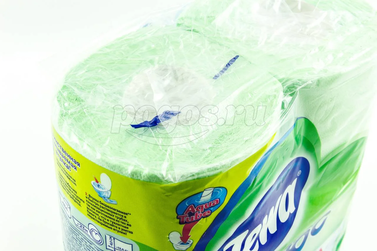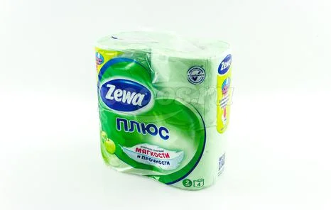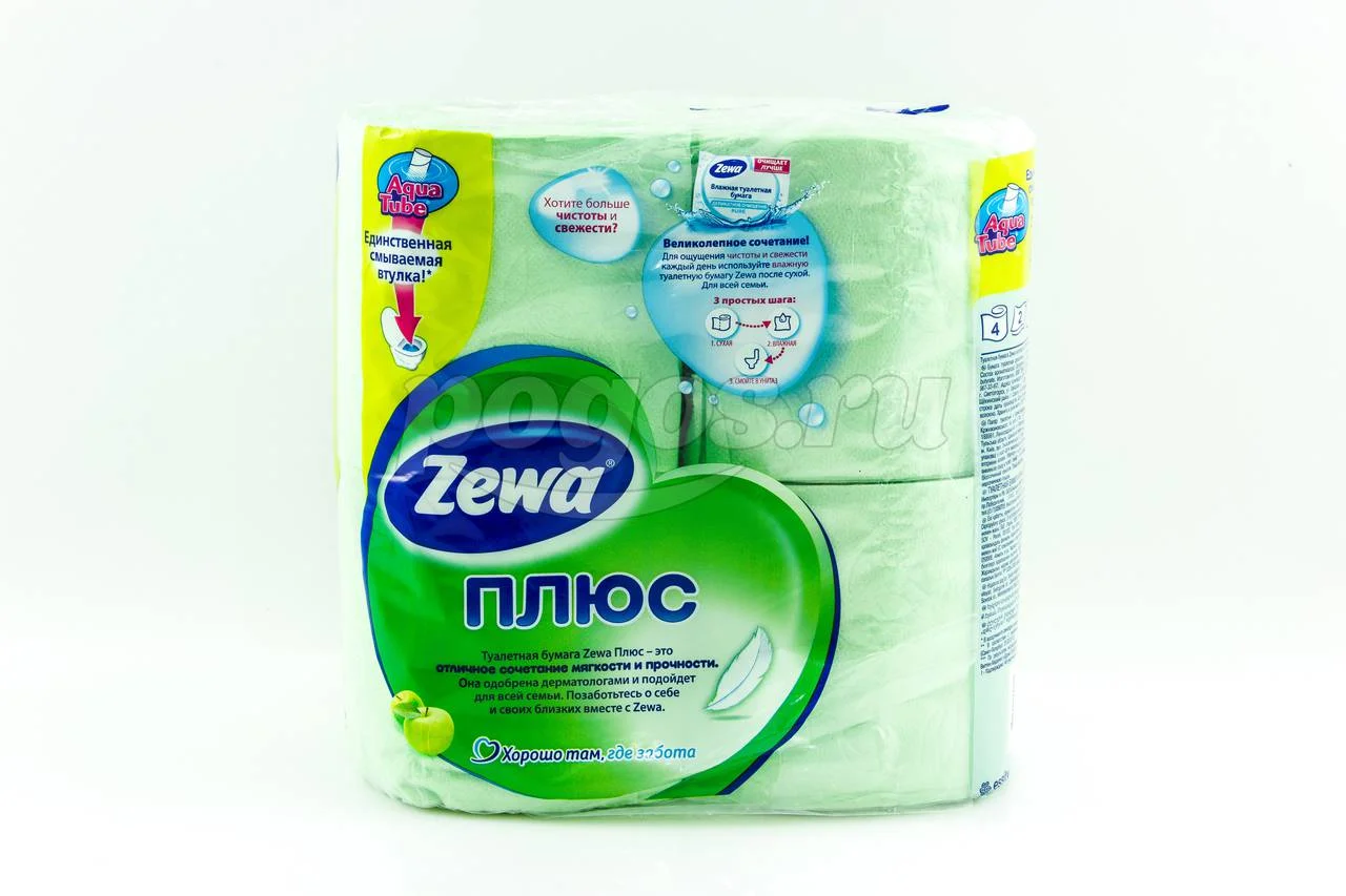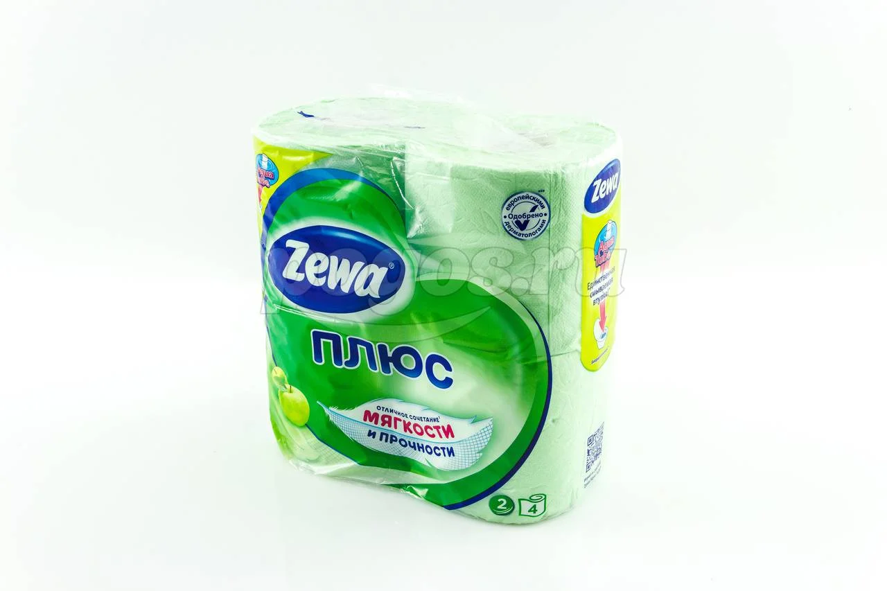 Бумага туалетная 2-х слойная,4 рулона, зеленое яблоко Zewa Plus, артикул: