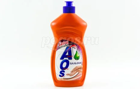 Жидкость для мытья посуды AOS "Бальзам" не только эффективно удаляет любые загрязнения даже в холодной воде, но и бережно воздействует на кожу рук.