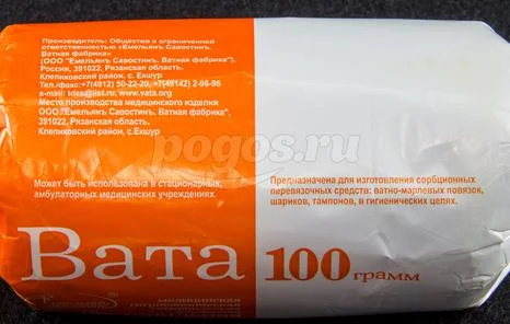 Вата медицинская гигроскопическая гигиеническая нестерильная.