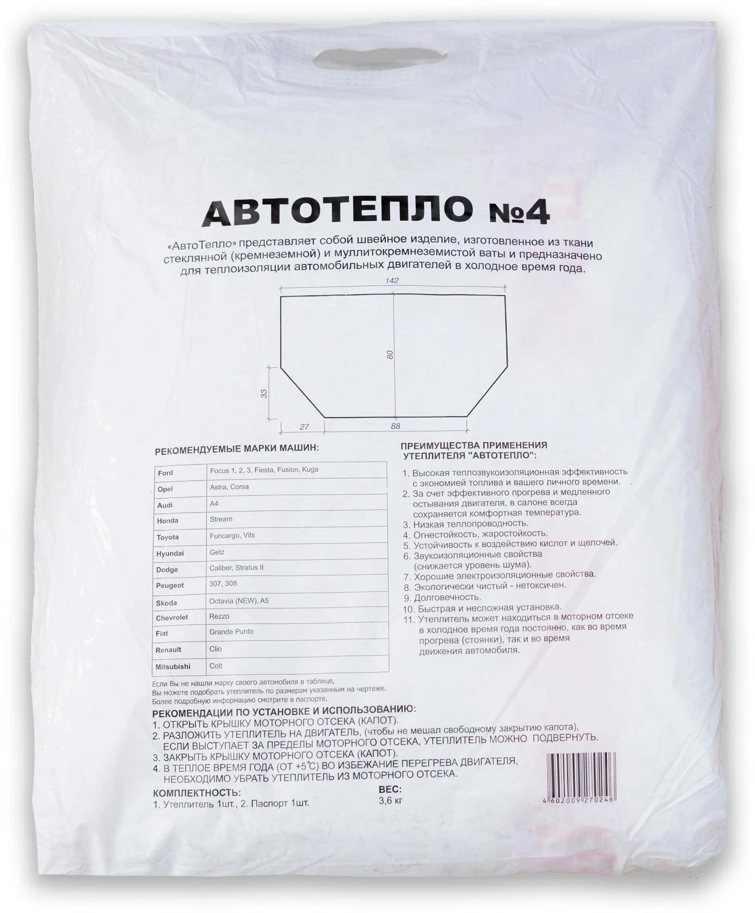 Автоодеяло для двигателя Автотепло 4, артикул: Автотепло №4