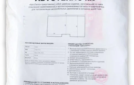Такой состав автоодеяла позволяет сохранять тепло двигателя на более длительный срок, улучшить шумоизоляцию моторного отсека и выдерживать температуру до 1200 градусов.