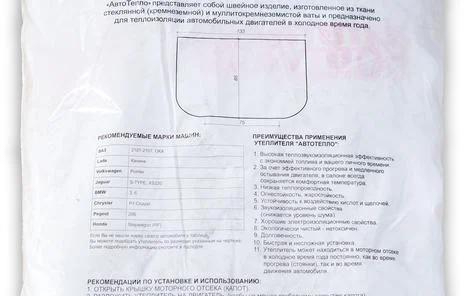 Такой состав автоодеяла позволяет сохранять тепло двигателя на более длительный срок, улучшить шумоизоляцию моторного отсека и выдерживать температуру до 1200 градусов.