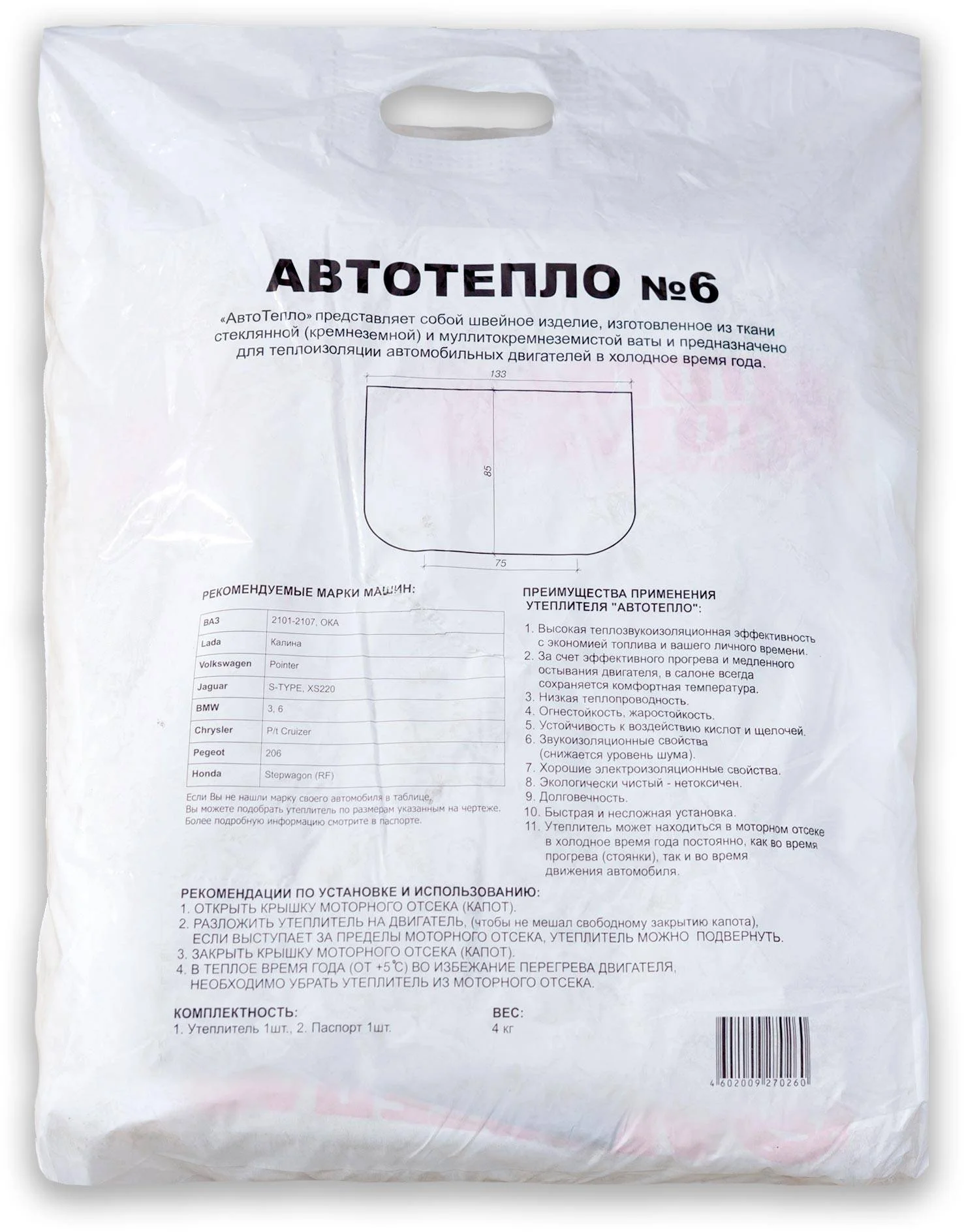 Автоодеяло для двигателя Автотепло 6, артикул: Автотепло №6