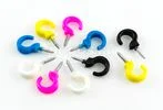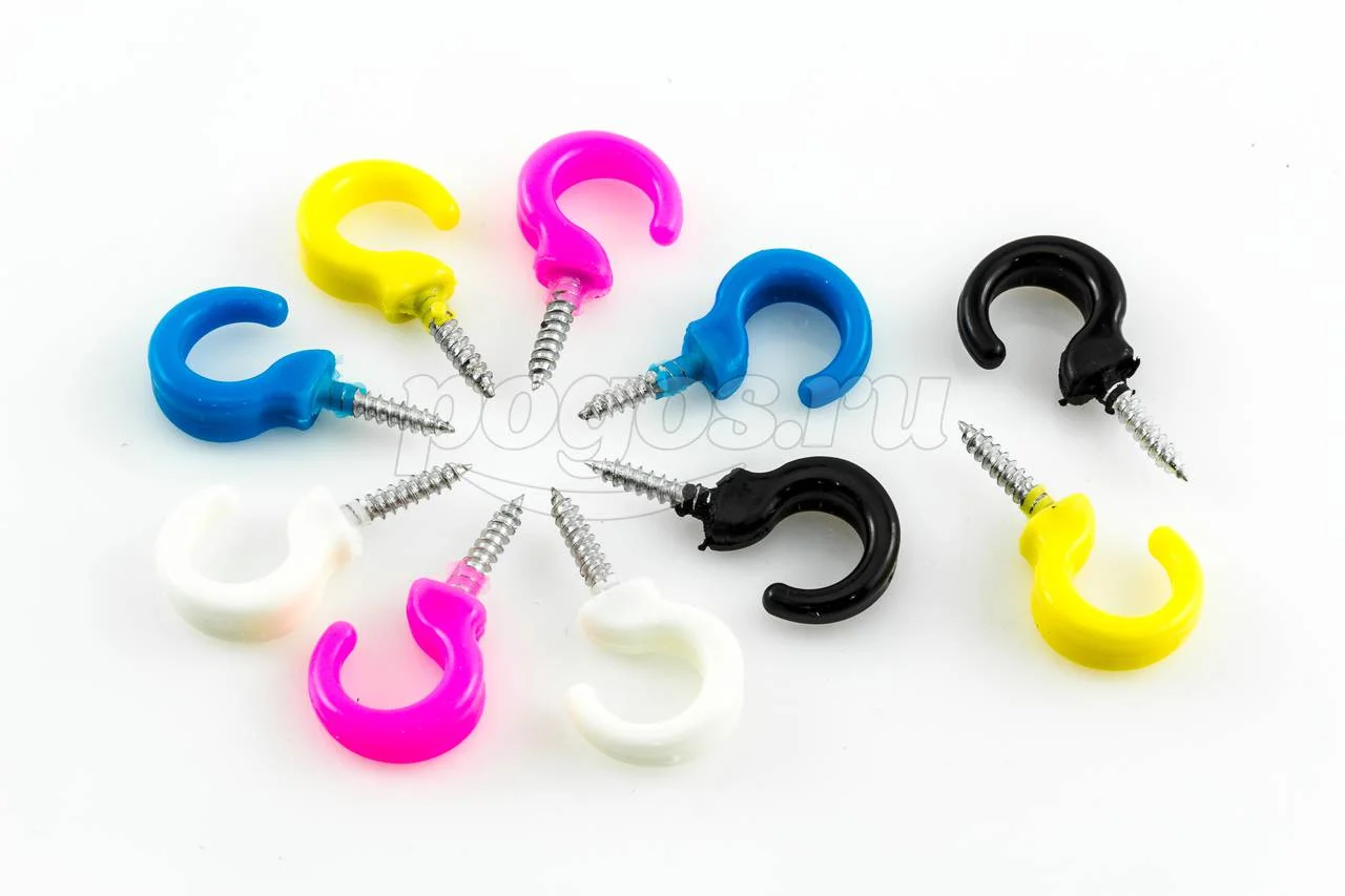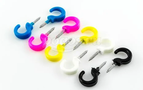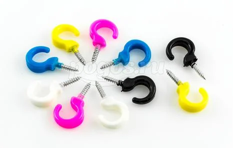 Крюки-вешалки выполнены из металлических саморезов с загнутыми серповидными наконечниками из пластмассы.