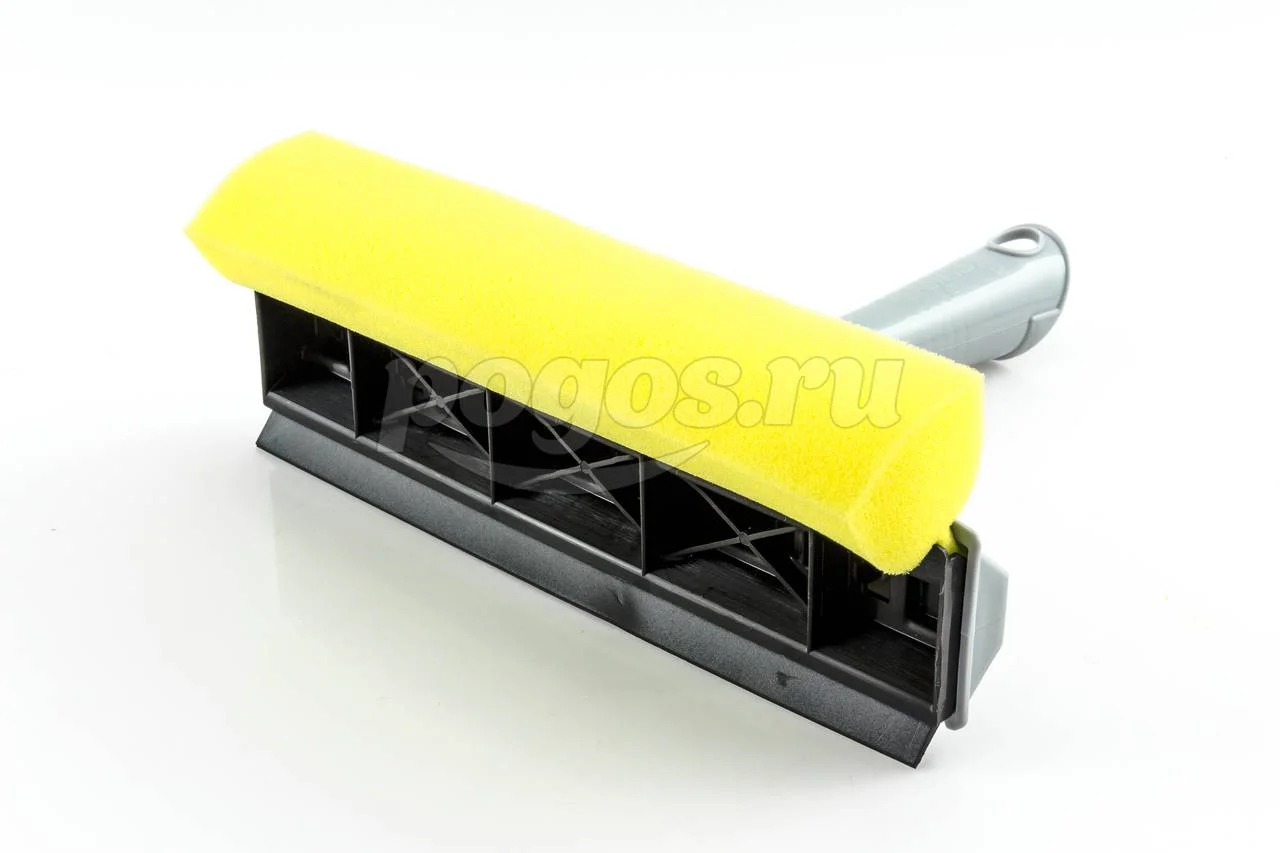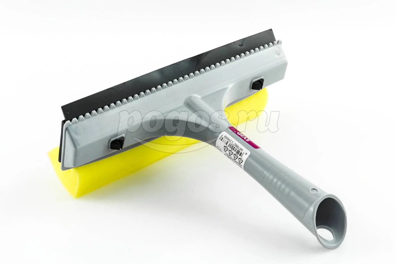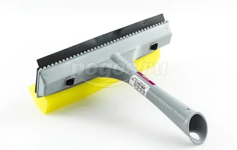 Окномойка с одной стороны оснащена поролоновой губкой для тщательного отмывания, а с другой - резиновой кромкой, с помощью которой легко собрать всю влагу, оставив стекло зеркально чистым и без разводов.
