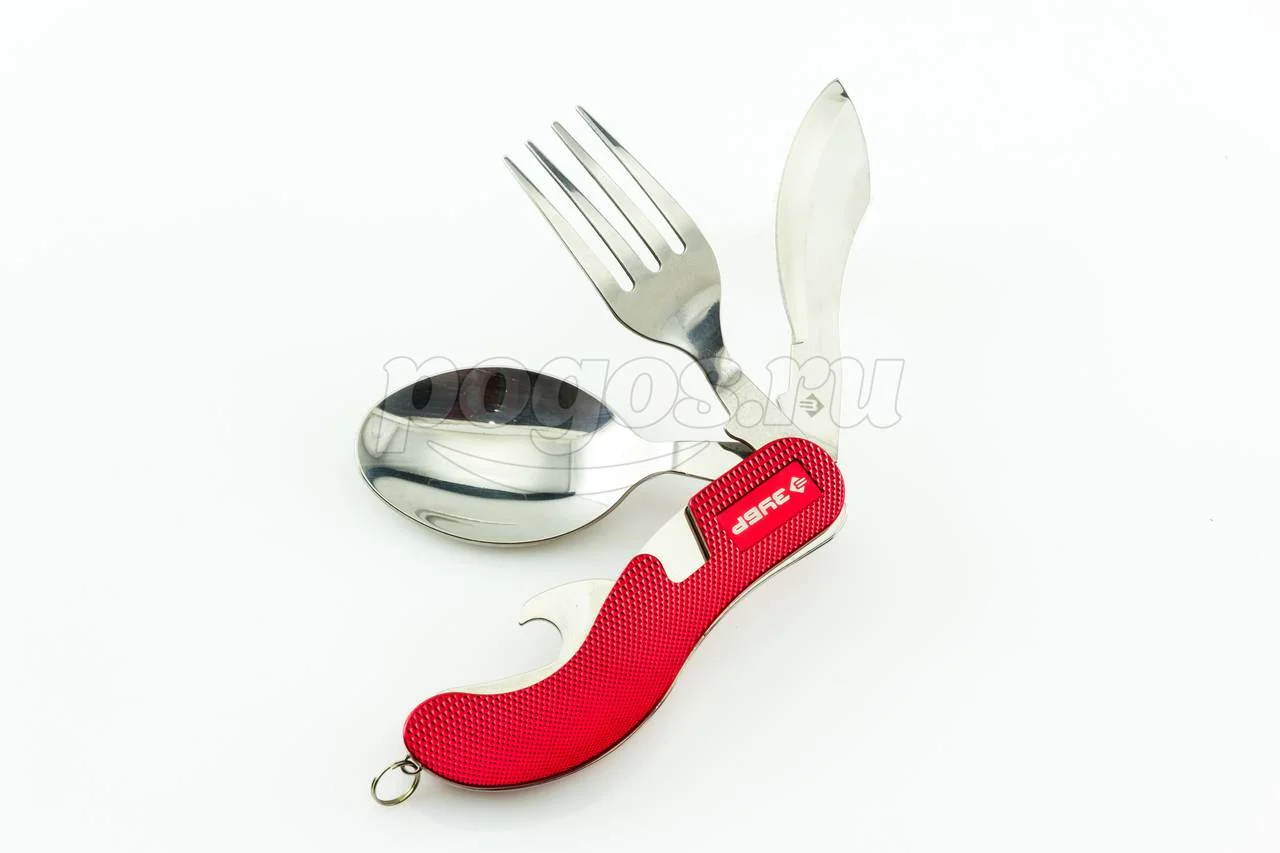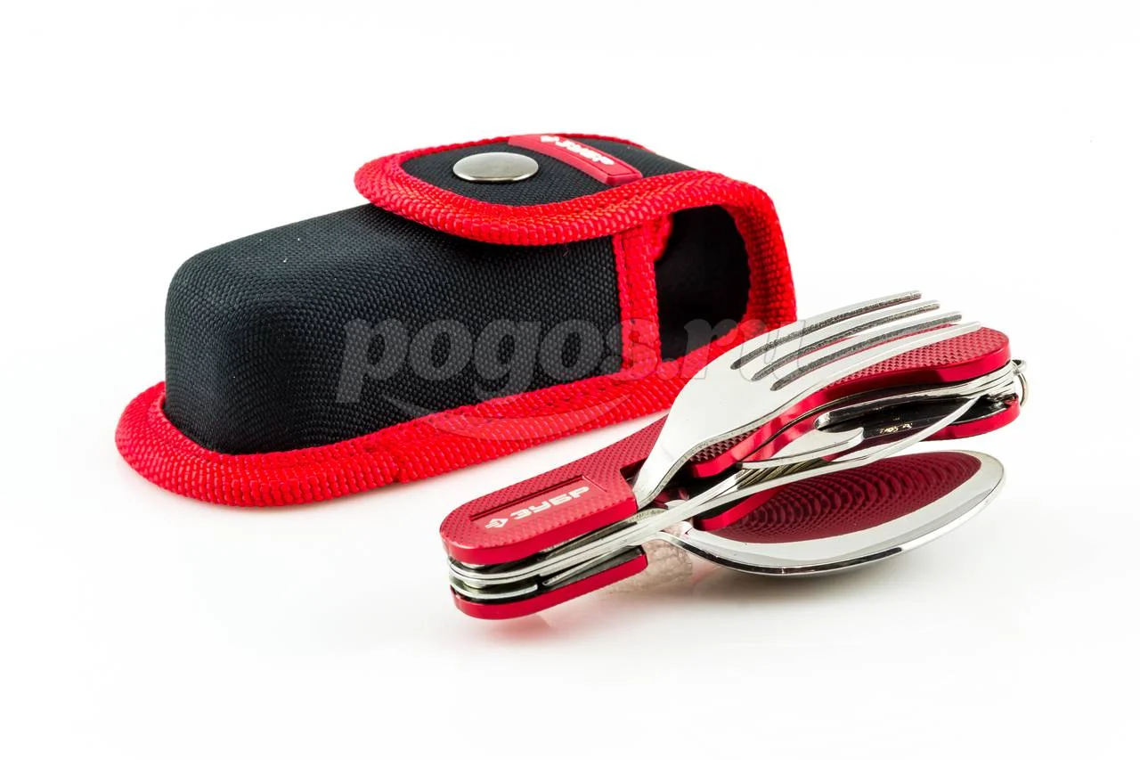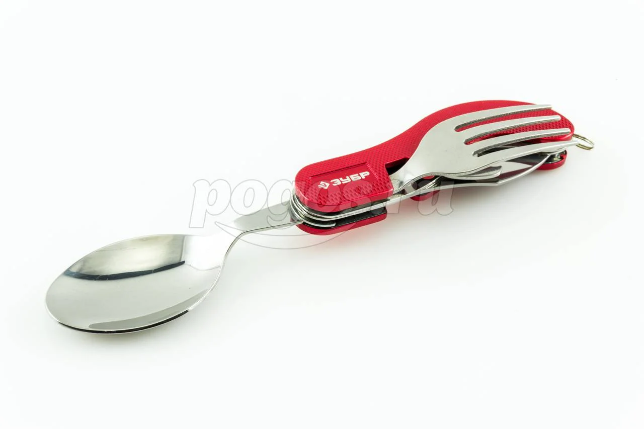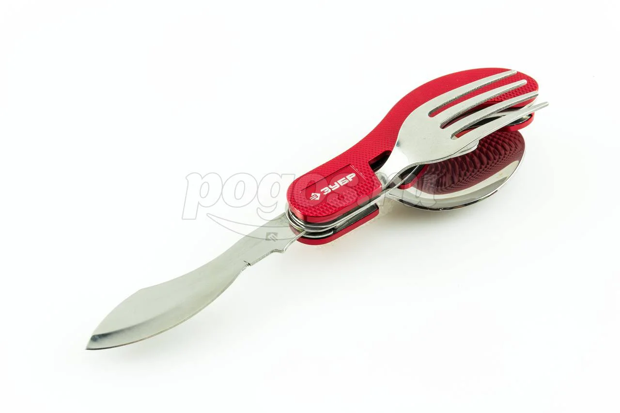 Походный набор 4в1 ЗУБР ТУРИСТ 47782 состоит из 4 предметов: вилка, нож, ложка, открывалка, которые пригодятся во время отдыха на природе или в дальних поездках. Изготовлены из нержавеющей стали для долгого срока эксплуатации.