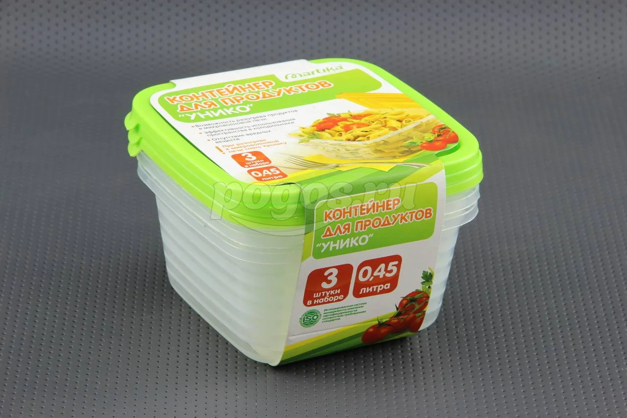 Набор контейнеров д/продуктов СВЧ 0,45л квадратные,3шт УНИКО, артикул: С215