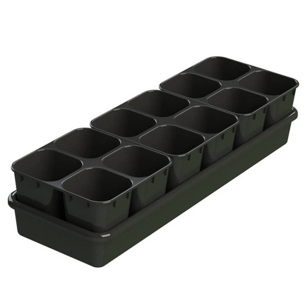 Каждая кассета, состоящая из 4 секций объёмом 0,8л, имеет круглые отверстия на дне и ножки.