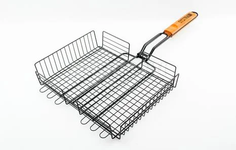 Конструкция объемной решетки гриль позволяет фиксировать верхнюю плоскость на разной высоте, поэтому на решетке можно запекать продукты различной толщины от стейков до куриных окорочков, не передавливая их и оставляя сочными.