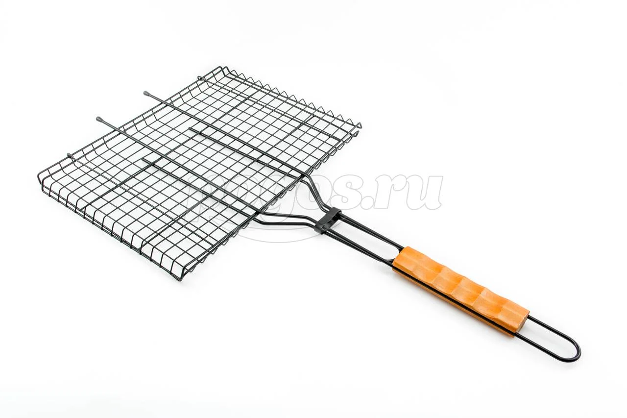 Увеличенная толщина прутьев позволяет значительно продлить срок службы изделия. Рукоятка изготовлена из дерева, покрыта лаком. Она не нагревается и имеет эргономичную форму, что обеспечивает удобство и безопасность приготовления пищи.