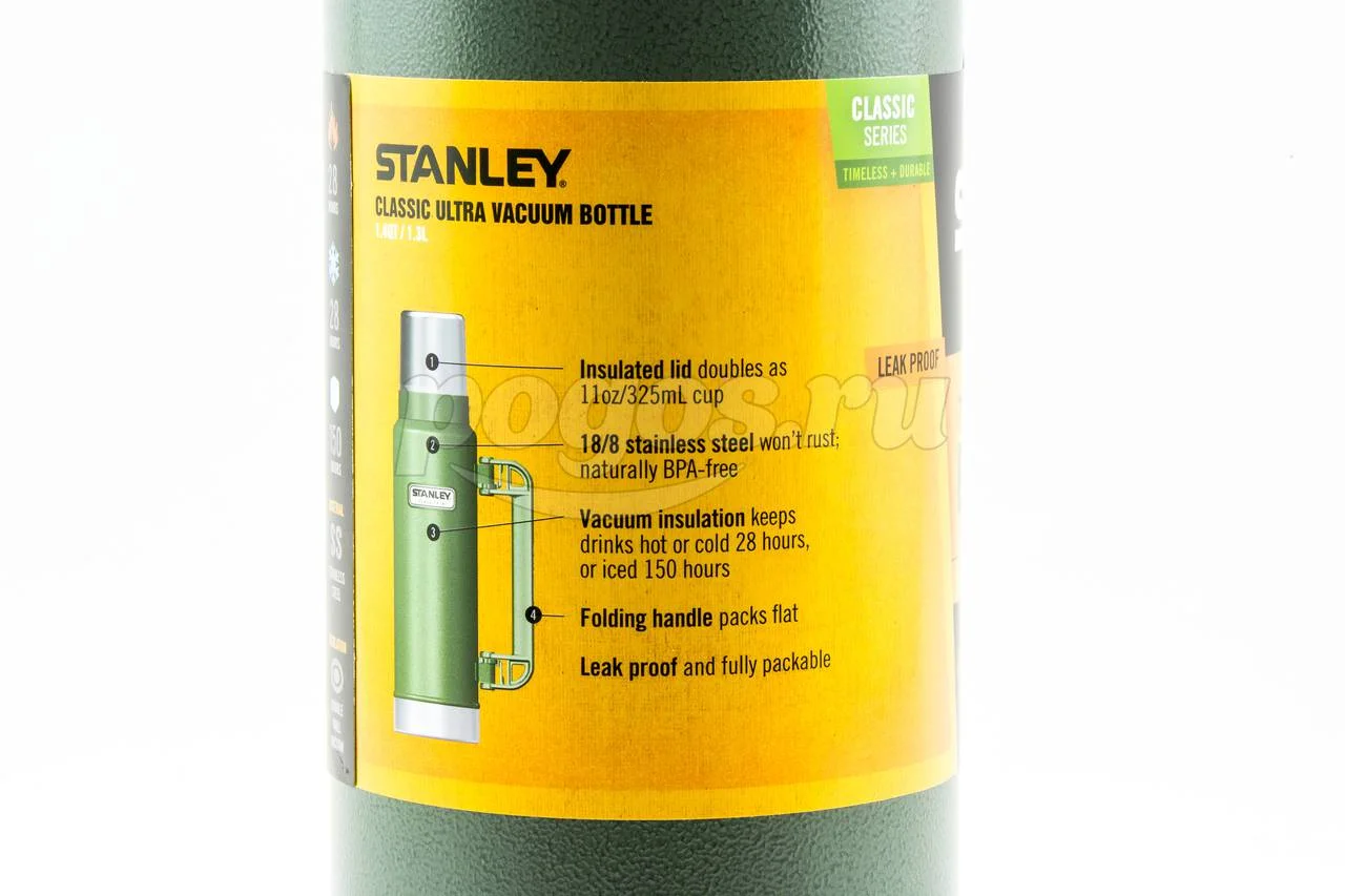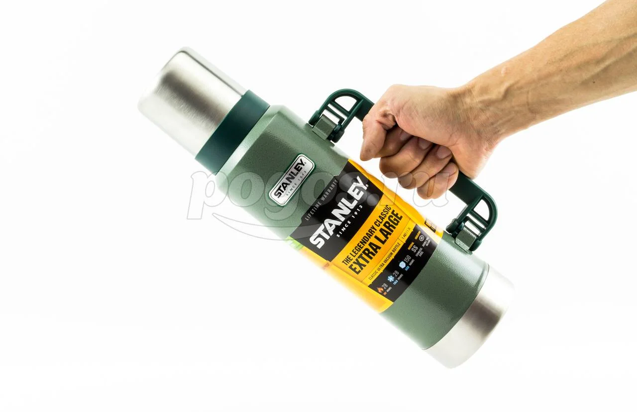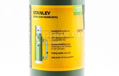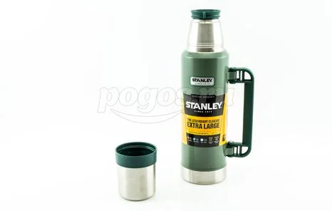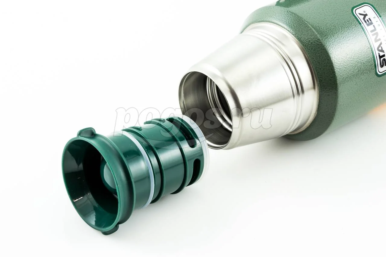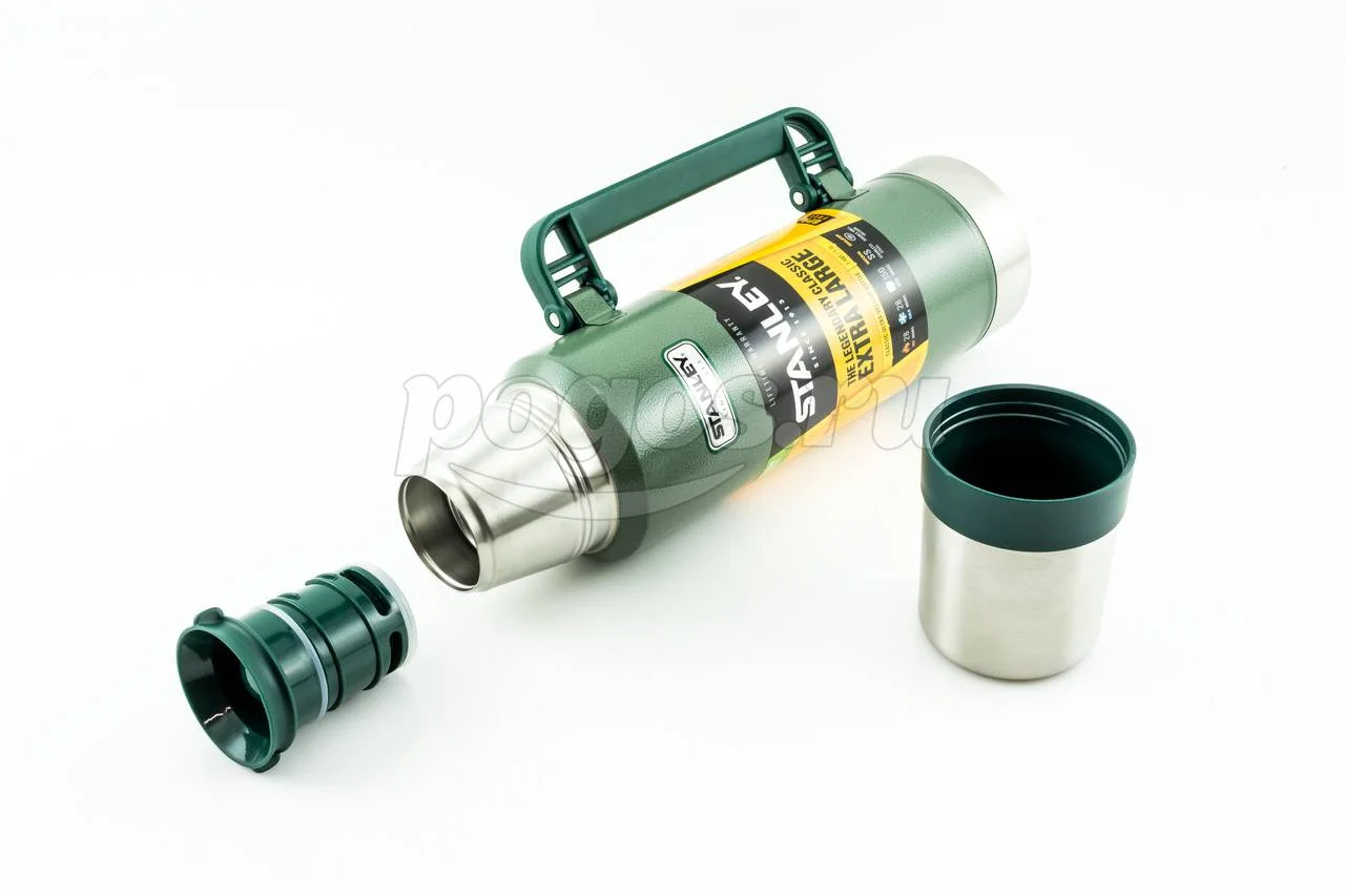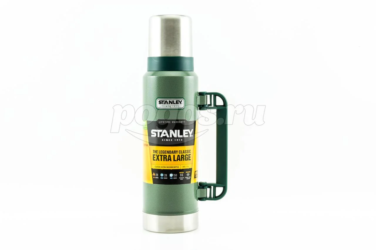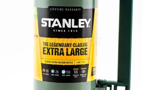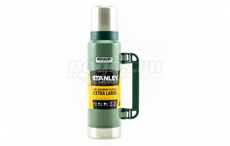 Термос Stanley Classic 1.3л, темно-зеленый 10-01032-037 используется для поддержания температуры содержимого до 24 часов благодаря герметичной пробке и вакуумной изоляции.