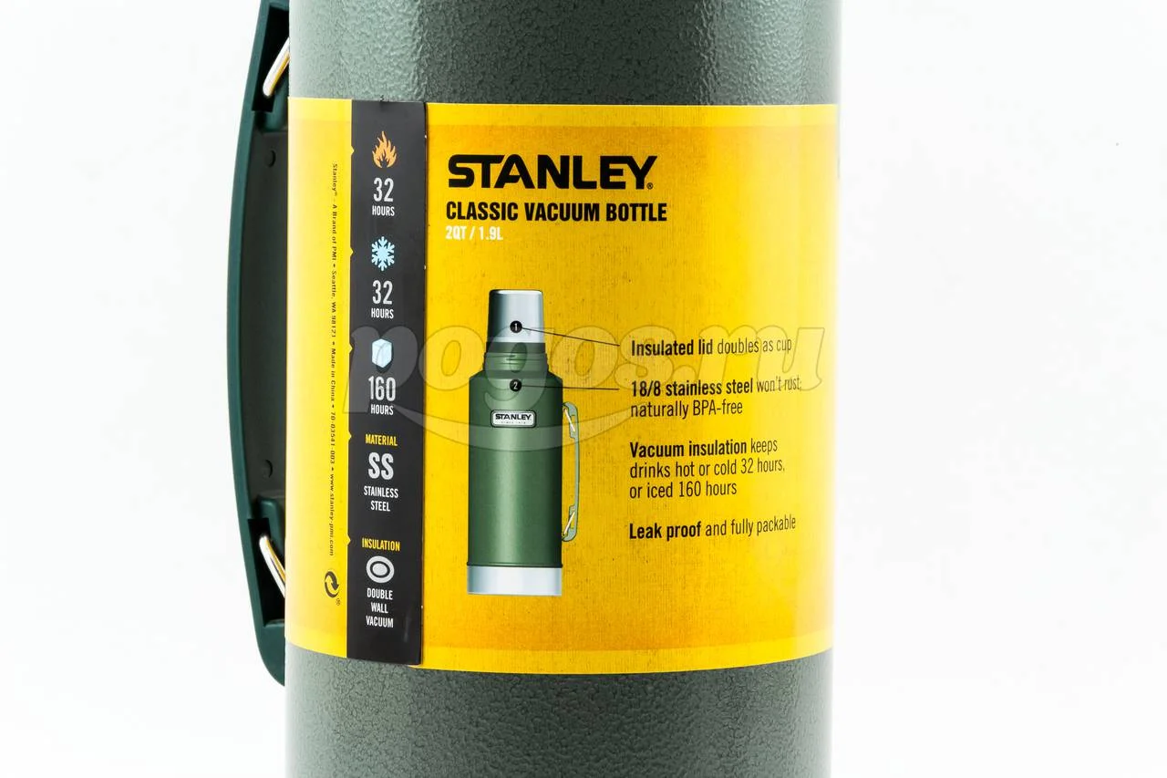 Термос Stanley Classic 1.9л, темно-зеленый 10-01289-036 используется для поддержания температуры содержимого до 24 часов благодаря герметичной пробке и вакуумной изоляции.