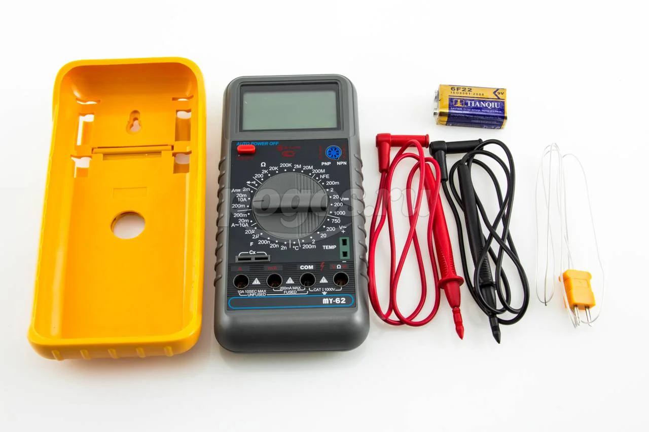 Универсальный цифровой мультиметр MY62, представитель профессиональной серии мультиметров MY60 с большим входным сопротивлением, имеет дополнительные функции: измерение температуры, тока, напряжения, сопротивления и емкости, тест диодов и транзисторов, прозвон цепей.