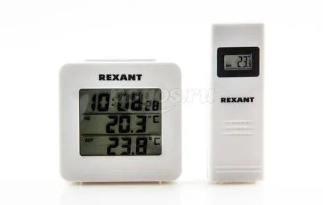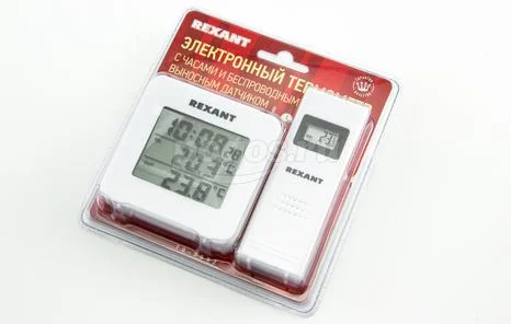 Электронный термометр с часами и беспроводным выносным датчиком REXANT