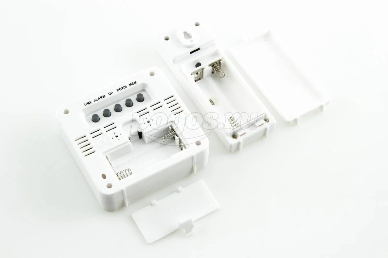 Электронный термометр с часами и беспроводным выносным датчиком для измерения показаний температуры внутри и снаружи помещения одновременно.