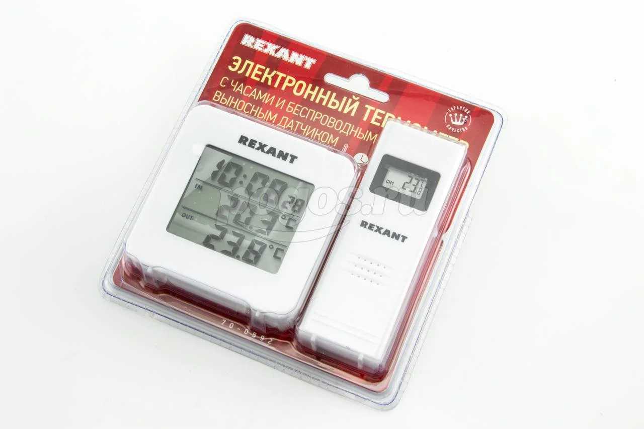Электронный термометр с часами и беспроводным выносным датчиком REXANT, артикул: 70-0592