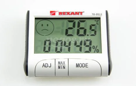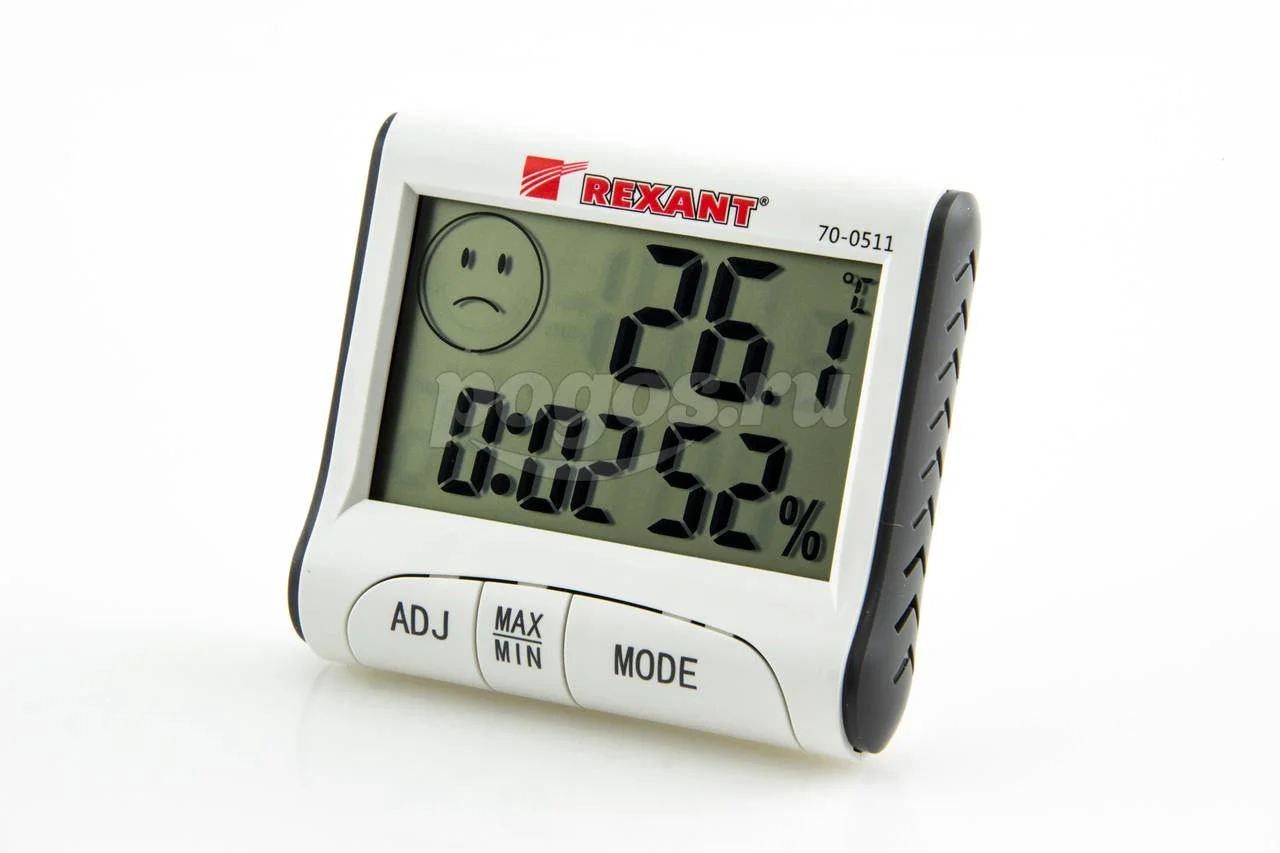 Термогигрометр комнатный с часами и функцией будильника REXANT предназначен для измерения показаний температуры и влажности в помещении, имеет часы и функцию будильника.