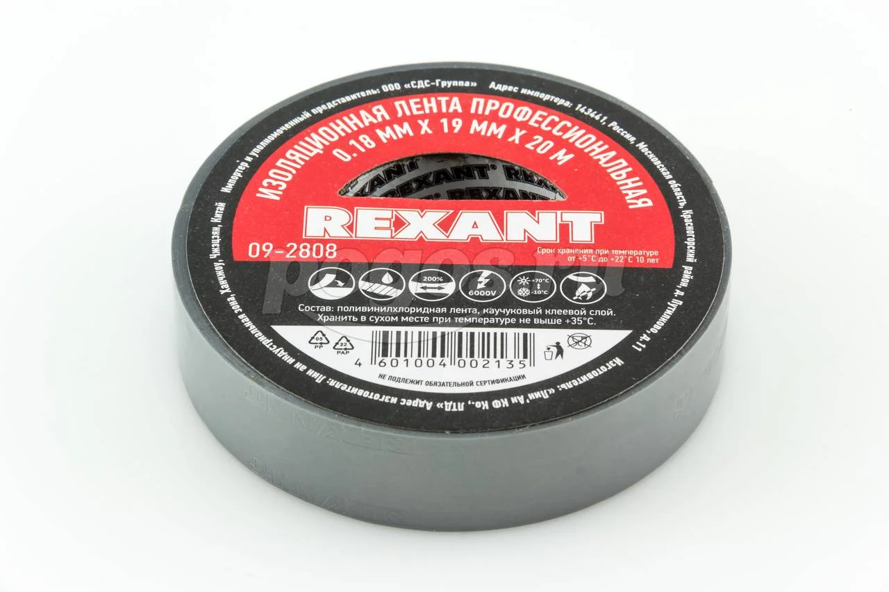 Изолента профес.ПВХ 0,18х19мм 20м серая REXANT / KRANZ