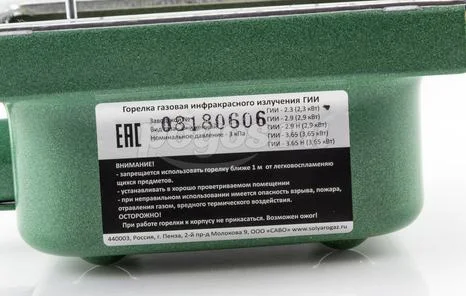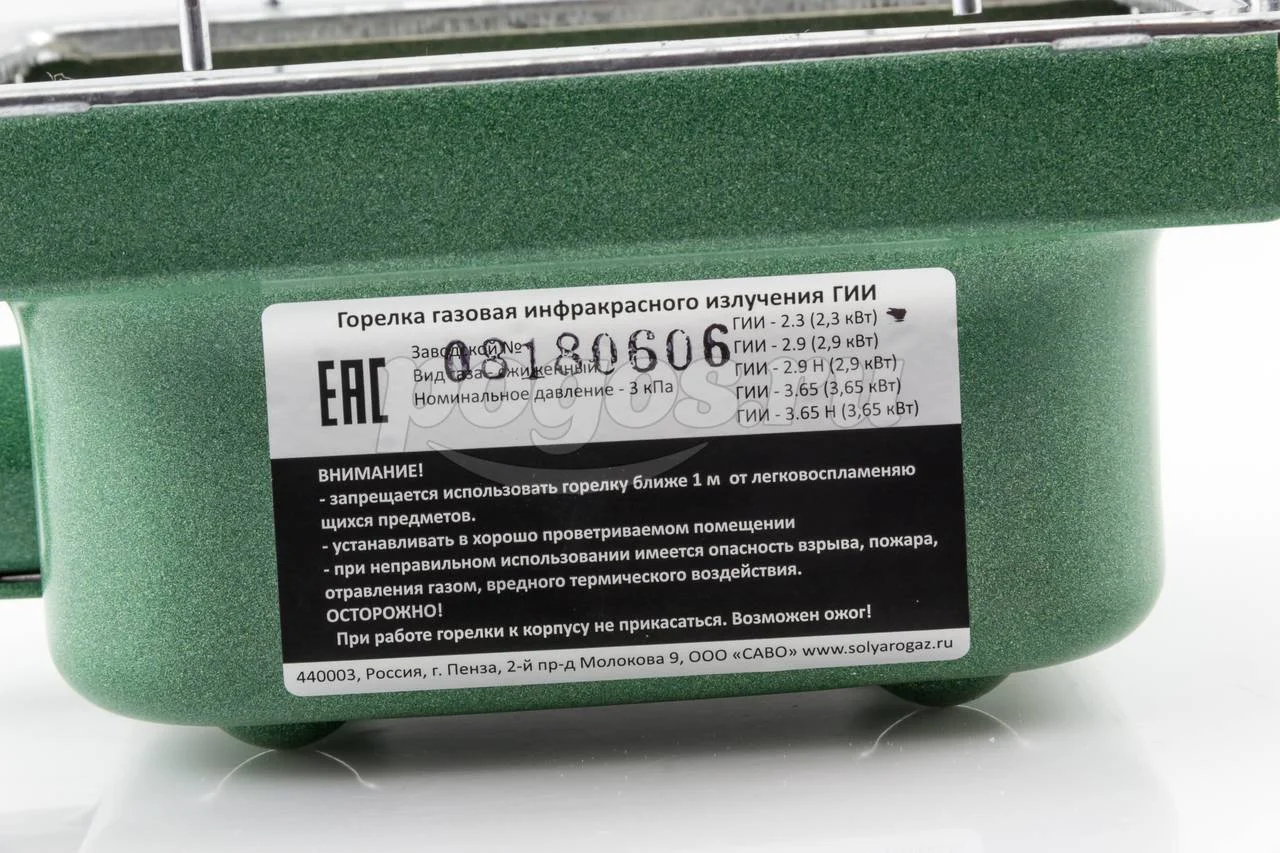 Обогреватель инфракрасный газовый 2,3кВт СОЛЯРГАЗ
