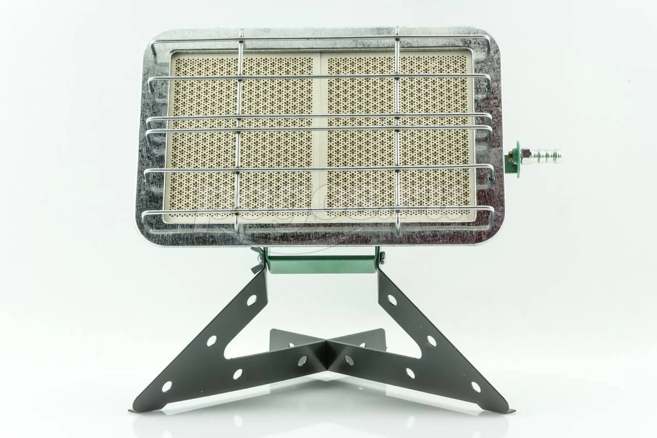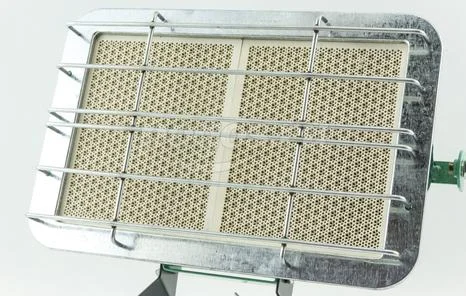 Принципом работы газового обогревателя является выделение инфракрасного излучения при сгорании газообразной смеси на поверхности керамической плитки.