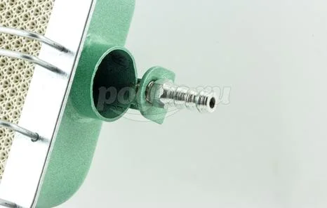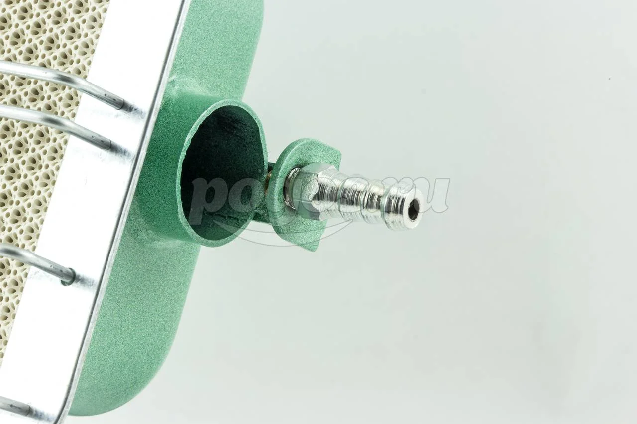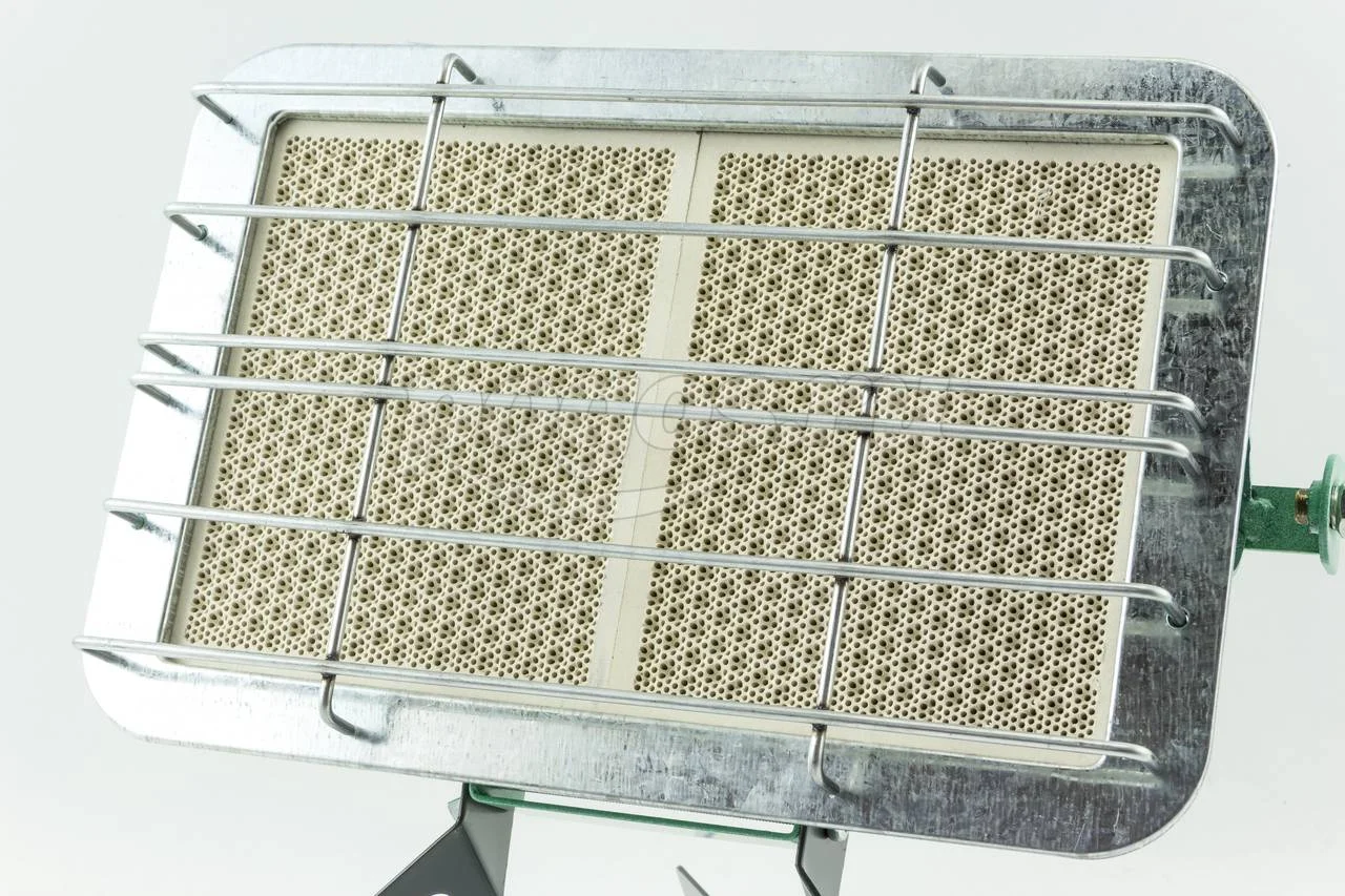 Выходя из отверстий керамической плитки, газовоздушная смесь сгорает у ее поверхности, разогревая ее до темп
