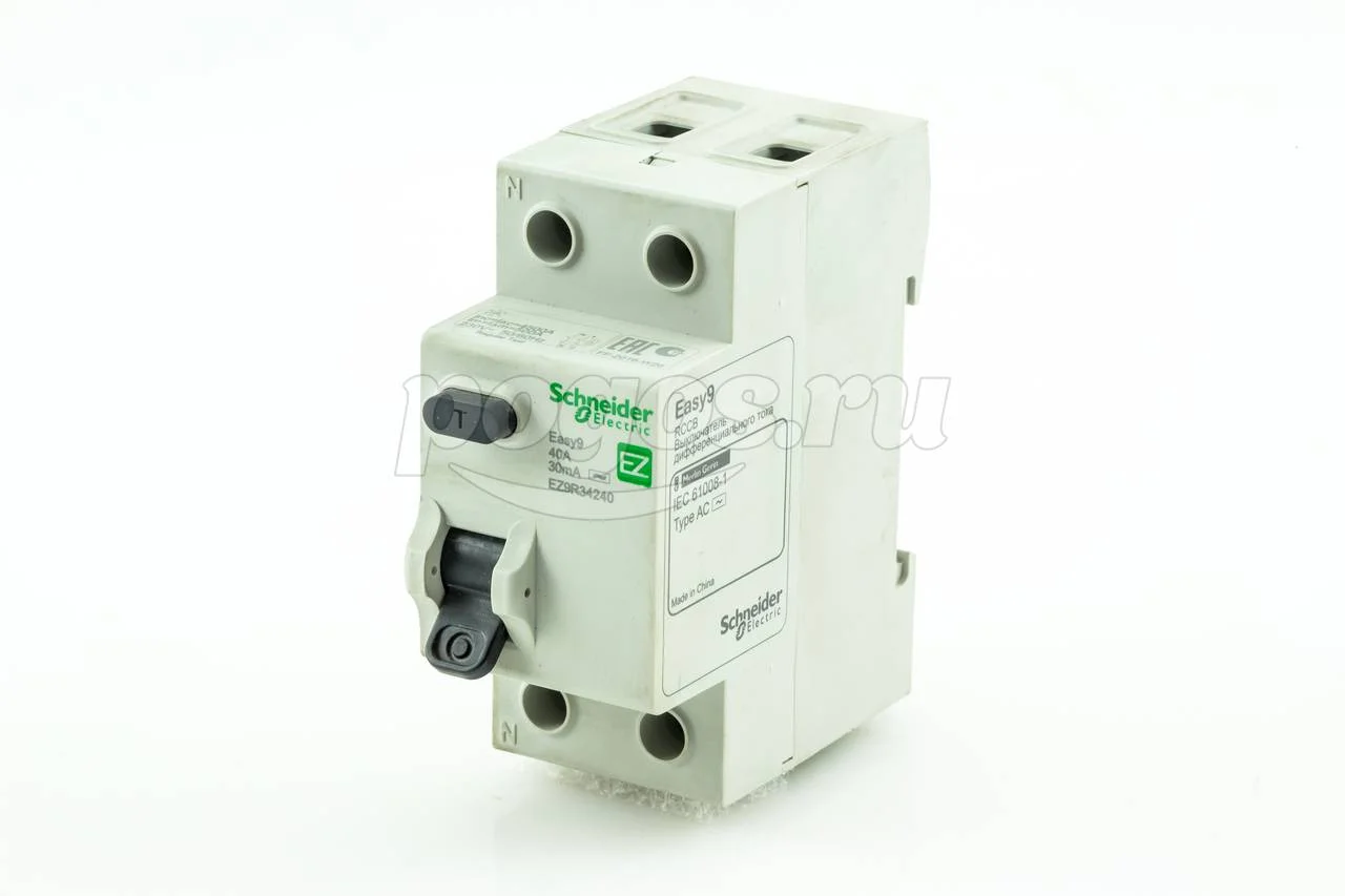 Выключатель дифференциального тока (УЗО) 2п 40А 30мА, тип AC, Easy9 SCHNEIDER ELECTRIC