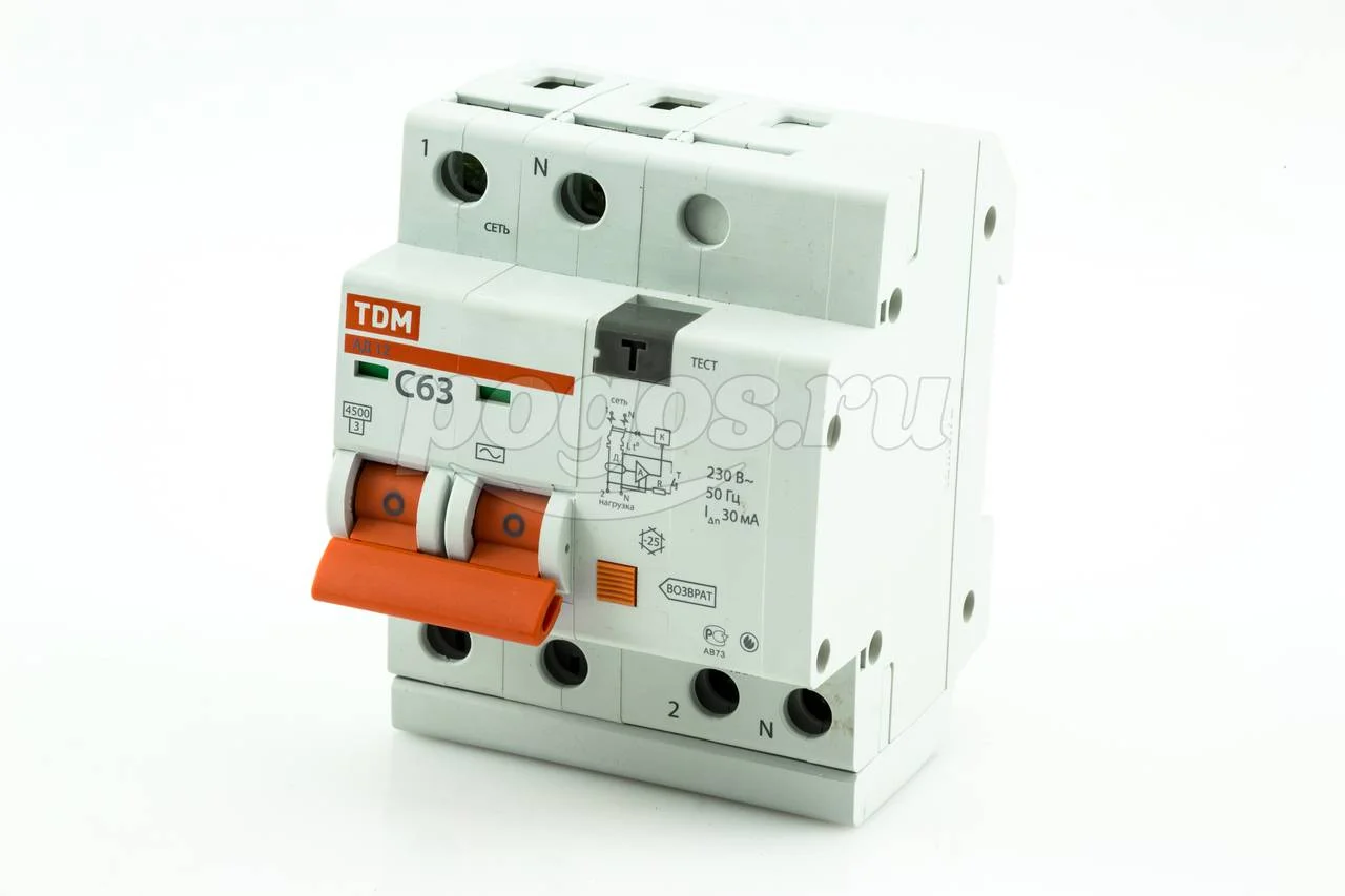 Автомат дифференциальный 2п C63A 30mA, тип AС, 4,5kA, АД-12 TDM