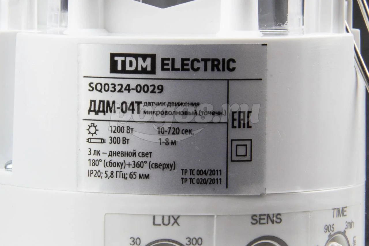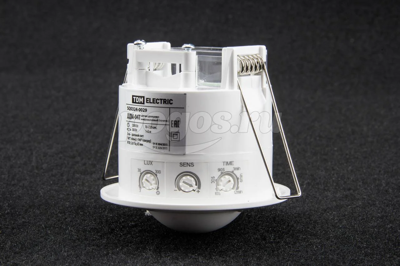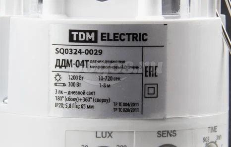 Датчик движения ТДМ SQ0324-0029 ДДМ-04Т микров. точечн. 5.8ГГц 65мм 1200Вт 10-720с 1-8м 3+лк IP20.