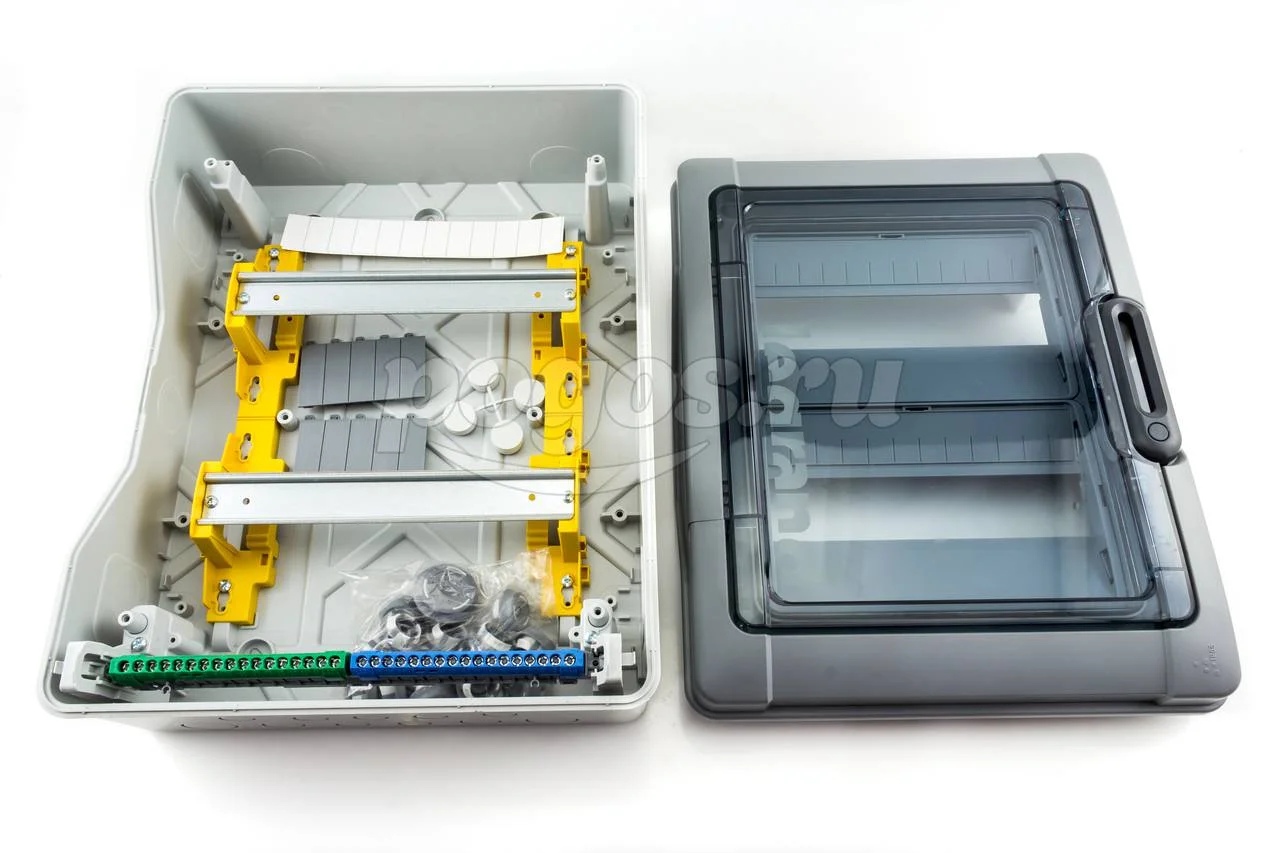 Комплектация: шины N и PE, комплект сальников, этикетки, заглушки для лицевых панелей