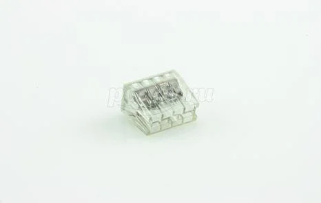 Установленная под углом плоская пружина надежно удерживает проводник, просто вставленный в зажим.