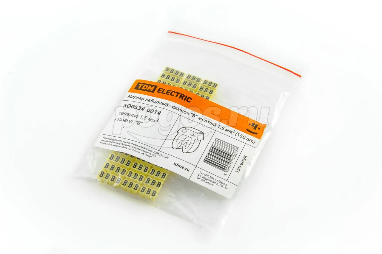 Маркер кабельный наборный - сим."B" желтый 1,5 мм2 150шт TDM, артикул: SQ0534-0014