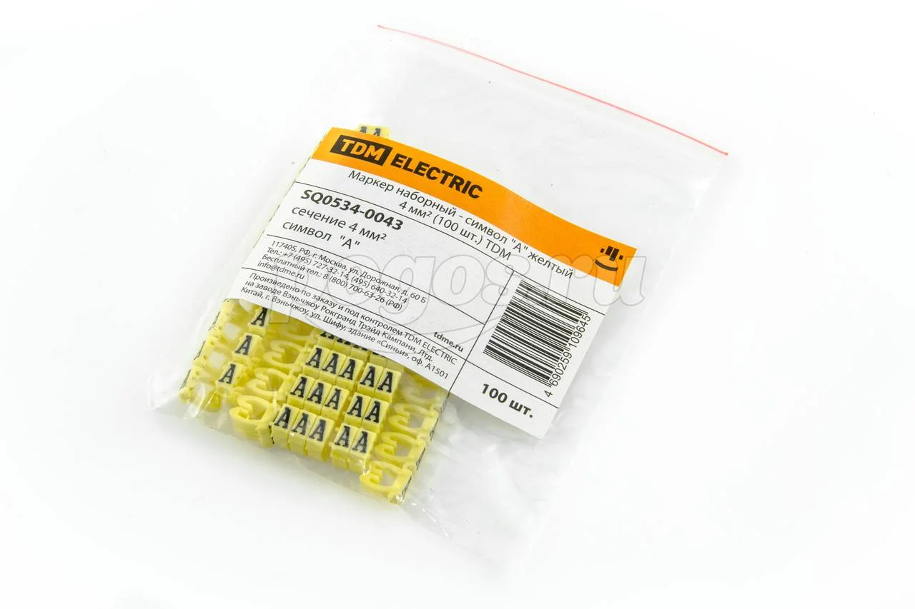 Маркер кабельный наборный - сим."А" желтый 4 мм2 100шт TDM, артикул: SQ0534-0043