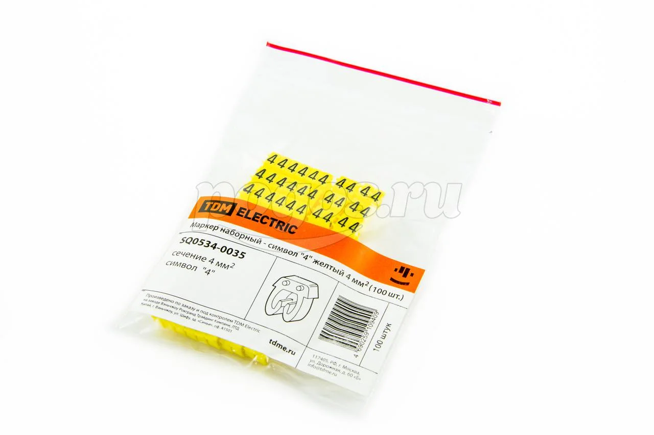 Маркер кабельный наборный - сим.4 желтый 4 мм2 100шт TDM, артикул: SQ0534-0035