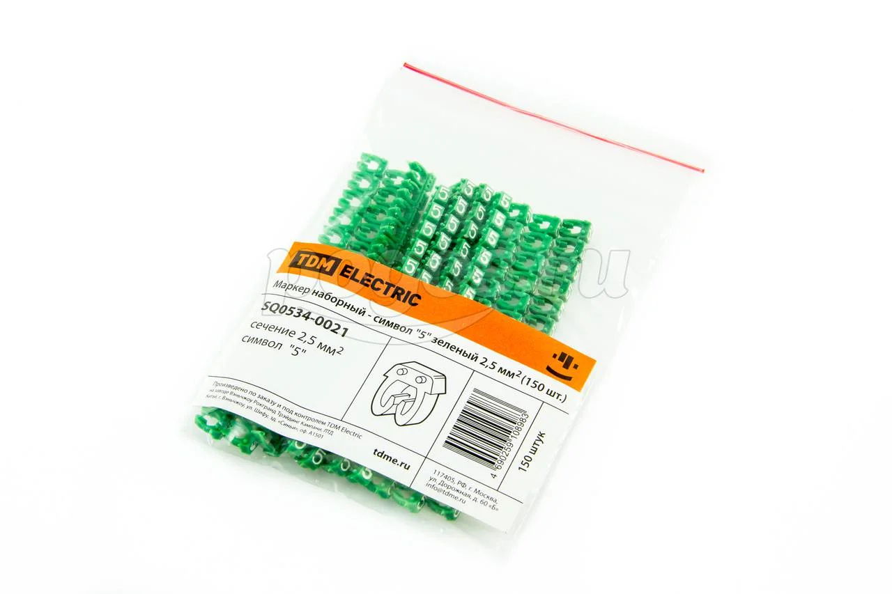 Маркер кабельный наборный - сим.5 зеленый 2,5 мм2 150шт TDM, артикул: SQ0534-0021