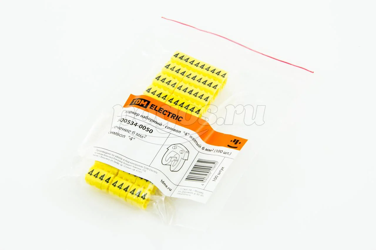 Маркер кабельный наборный - сим.4 желтый 6 мм2 100шт TDM, артикул: SQ0534-0050