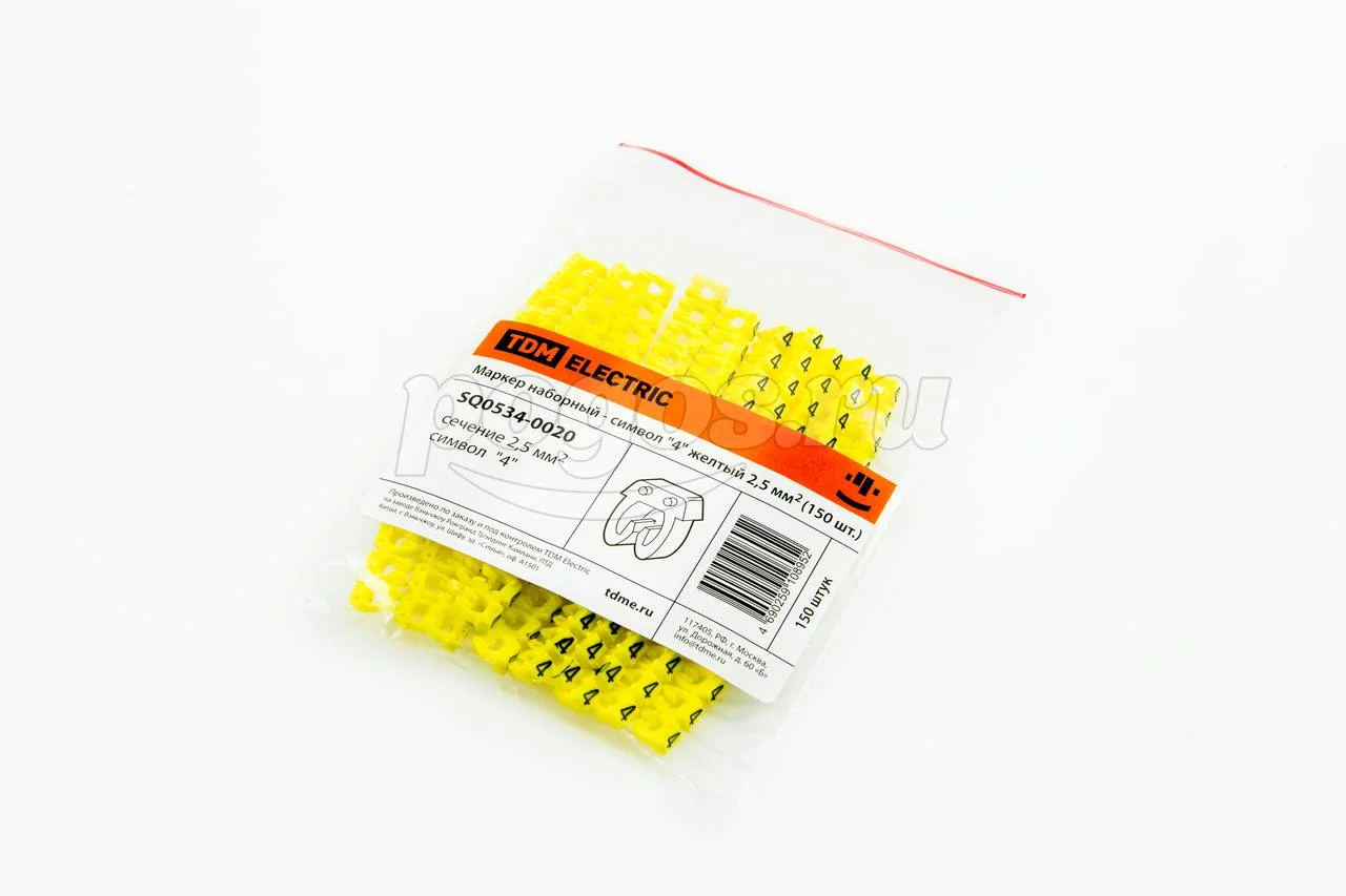 Маркер кабельный наборный - сим.4 желтый 2,5 мм2 150шт TDM, артикул: SQ0534-0020