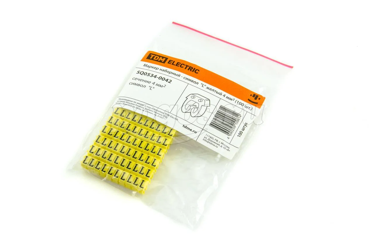 Маркер кабельный наборный - сим."L" желтый 4 мм2 100шт TDM, артикул: SQ0534-0042