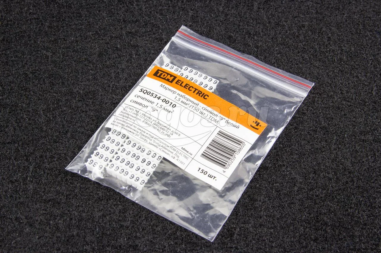 Маркер кабельный наборный - сим.9 белый 1,5 мм2 150шт TDM, артикул: SQ0534-0010
