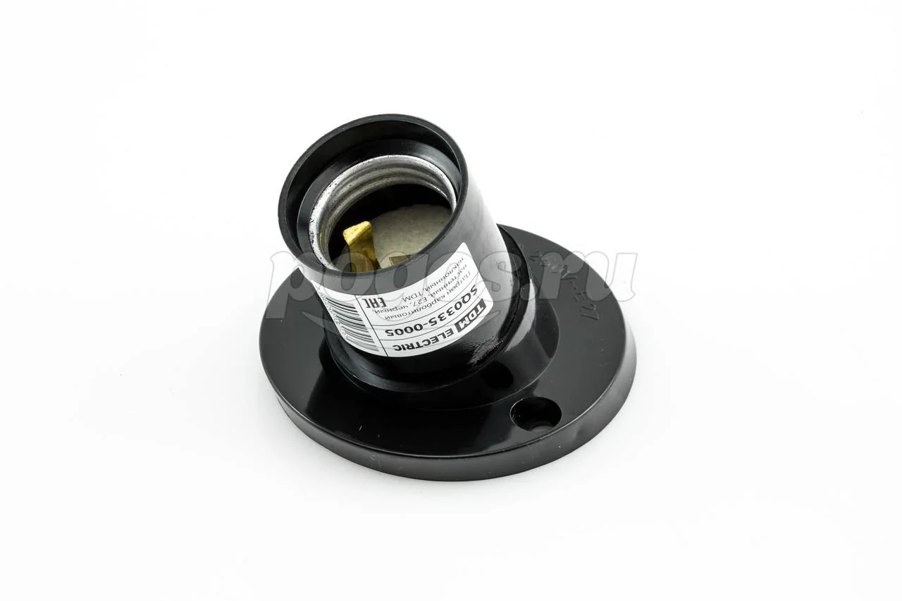 Наклонный карболитовый настенный патрон Е27, черный TDM SQ0335-0005 используется для фиксации ламп и подведения их к электрической сети при подключении бытовых или промышленных источников освещения.