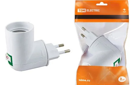 Переходник вилка-Е27 с выключателем TDM SQ0335-1007 широко используется для подключения лампы с цоколем, отличным от патрона светильника.