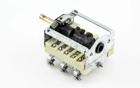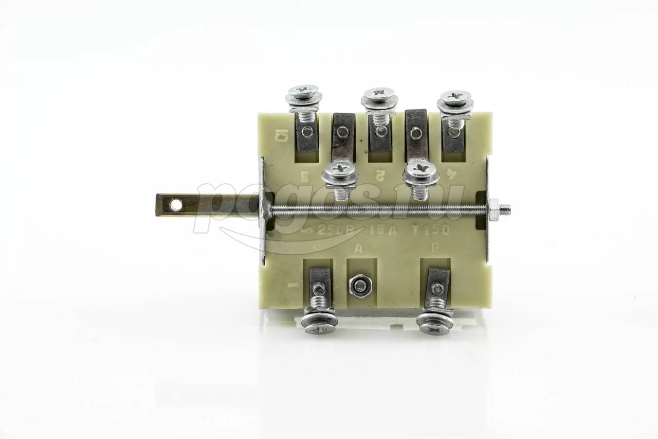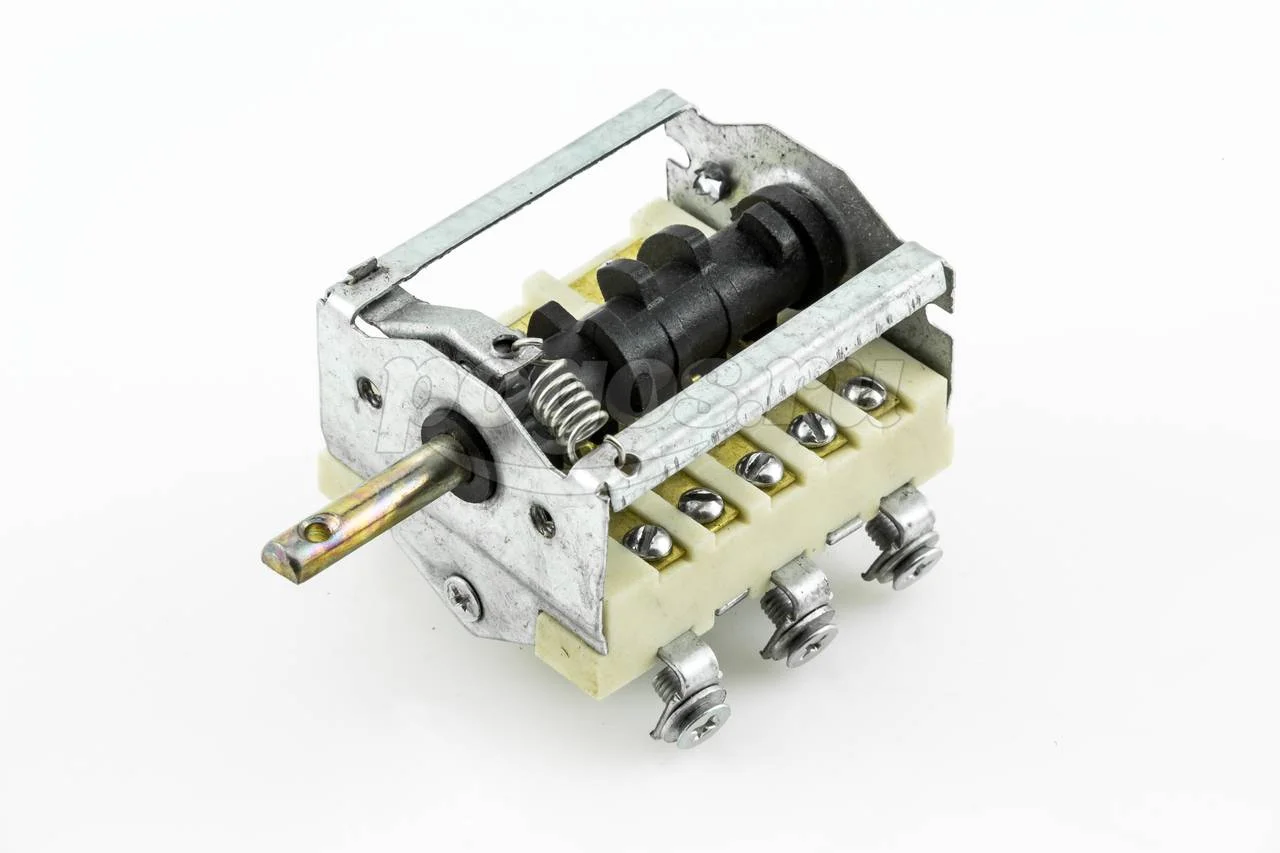 Переключатели по типу бывают ступенчатыми, т.е рабочие режимы переключаются с щелчком и плавные – без ступенчатые переключатели. Плавные бесступенчатые переключатели называют еще регуляторами мощности (РМ). Ступенчатые переключатели мощности (ПМ) в зависимости от коммутации разделяют на 2-х позиционные (ПМ 2), 3-х позиционные (ПМ 3), 4-х позиционные (ПМ 4), 5-ти позиционные (ПМ 5), 6-ти позиционные (ПМ 6) , 7-ми позиционные (ПМ 7) и т.д. Бывают даже 10-ти и выше позиционные переключатели, но они, как правило, встречаются в плитах импортного производства и служат, в основном, для переключения режимов духовки.