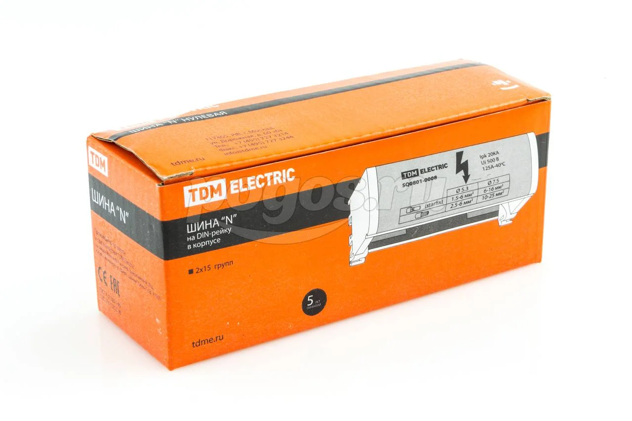 Шина нулевая на DIN рейку 2х15, в корпусе TDM, артикул: SQ0801-0008